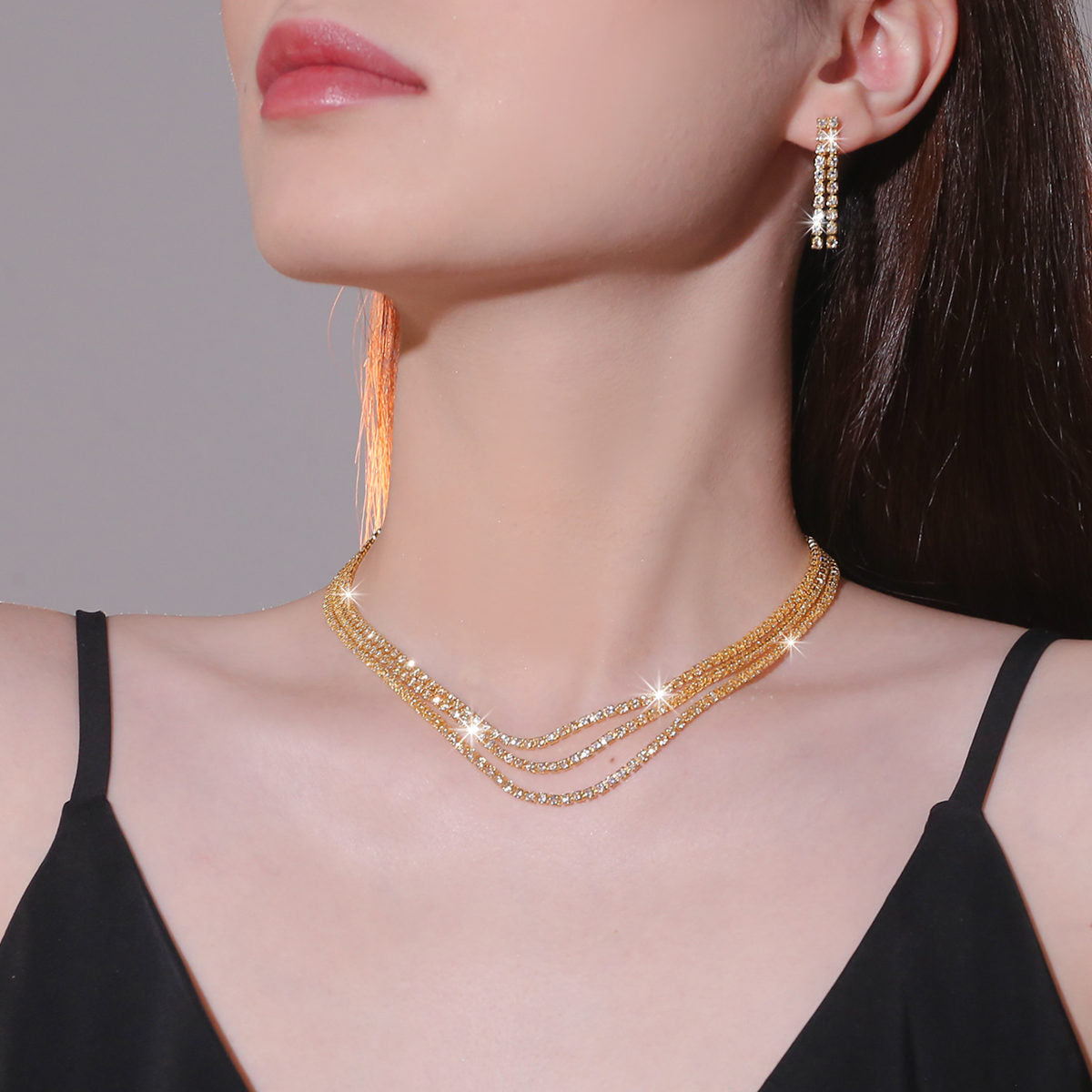 亚马逊爆款热卖水钻项链耳环两件套 婚宴礼服配饰 珠宝首饰套装