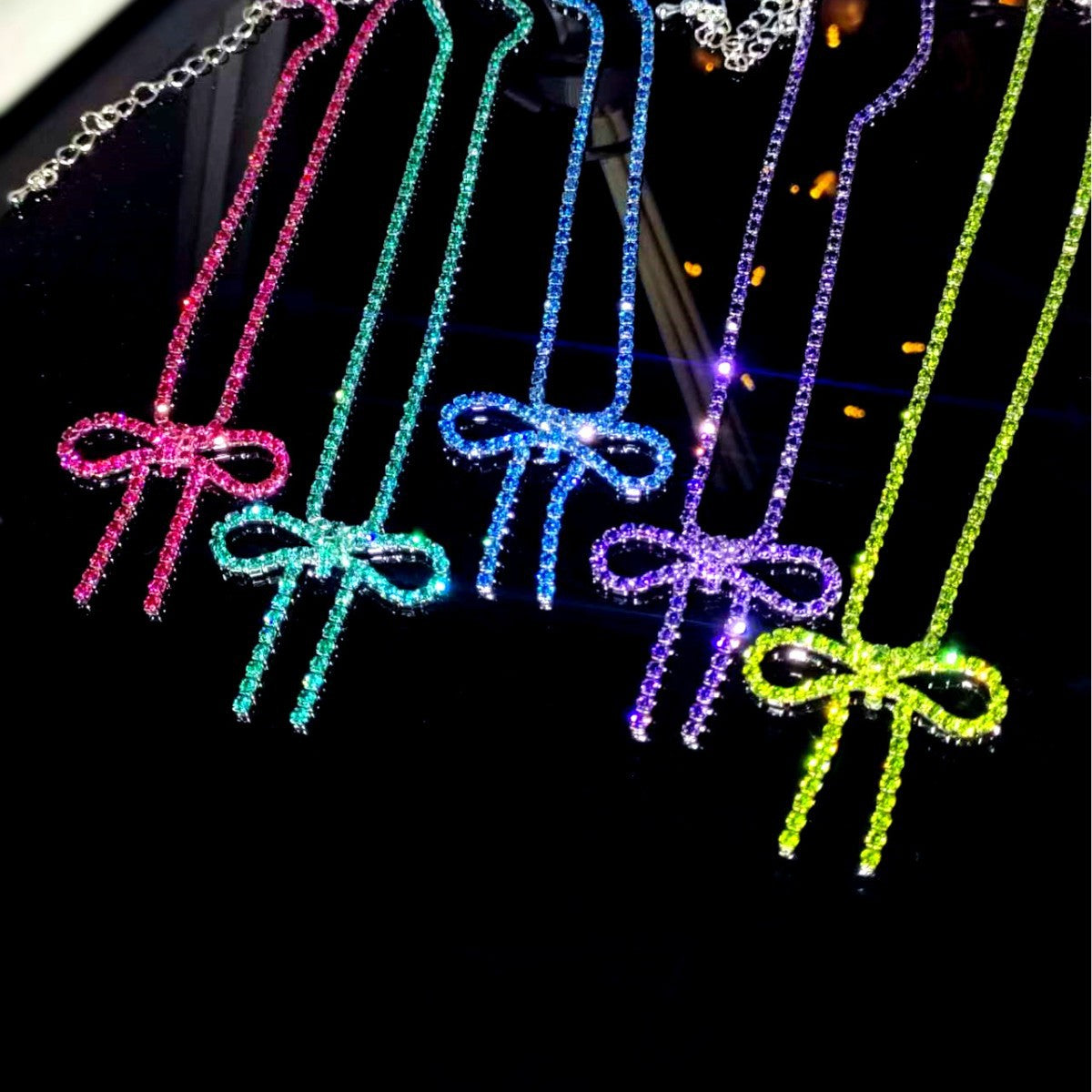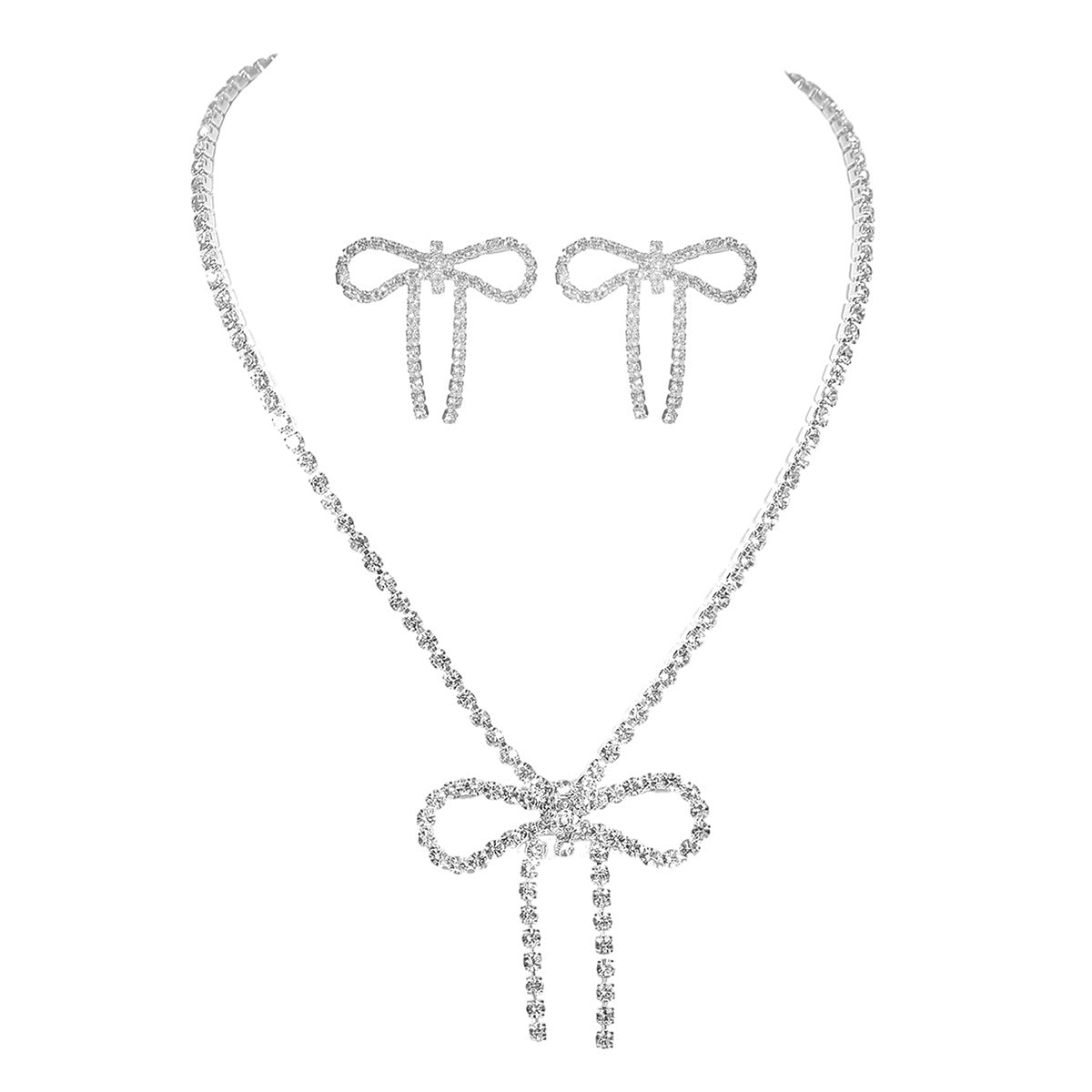 亚马逊爆款闪亮水钻蝴蝶结项链耳环套装 两件套走秀比赛项饰耳饰