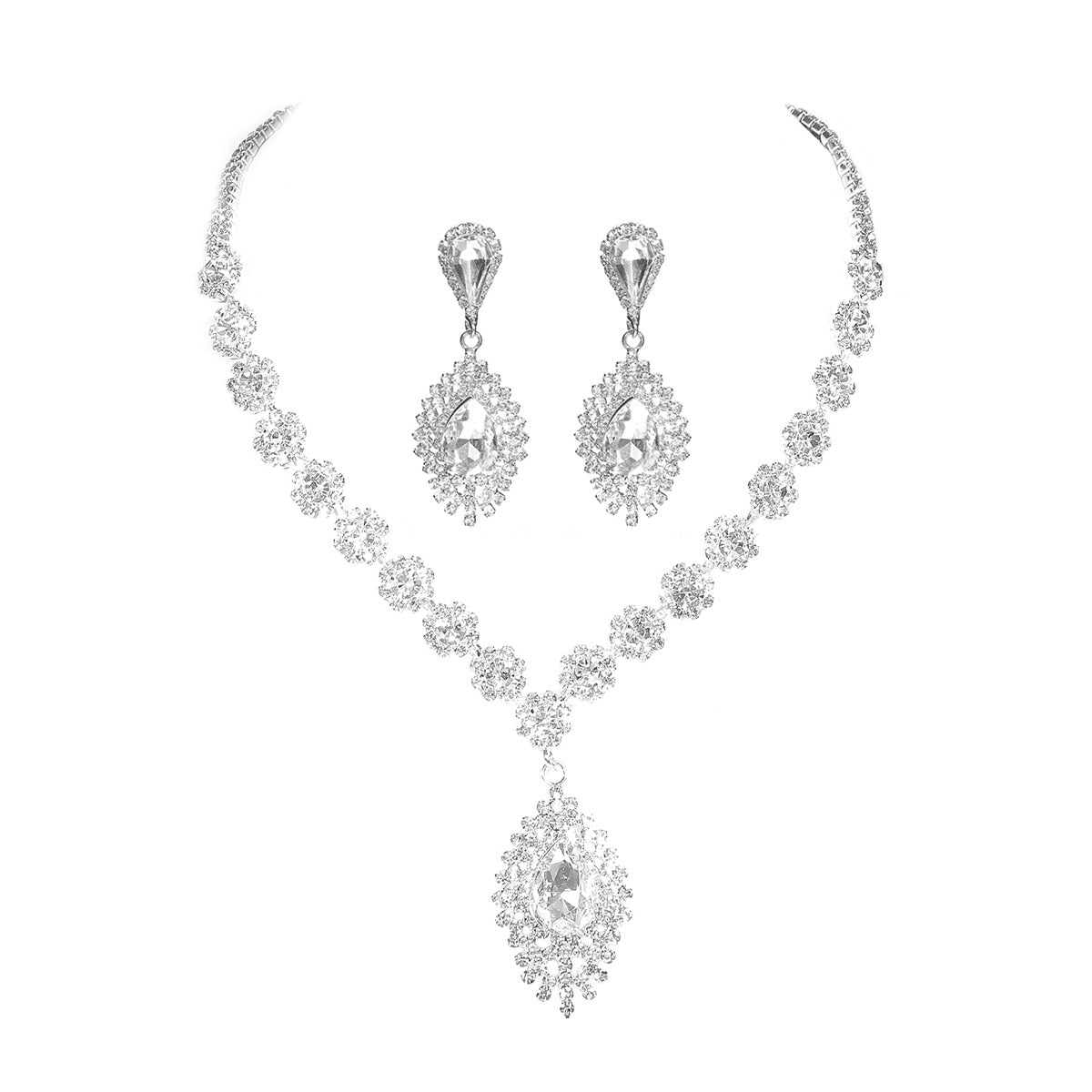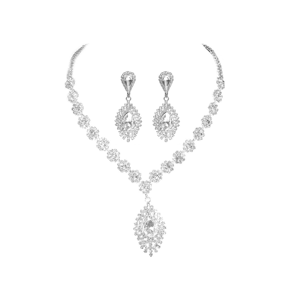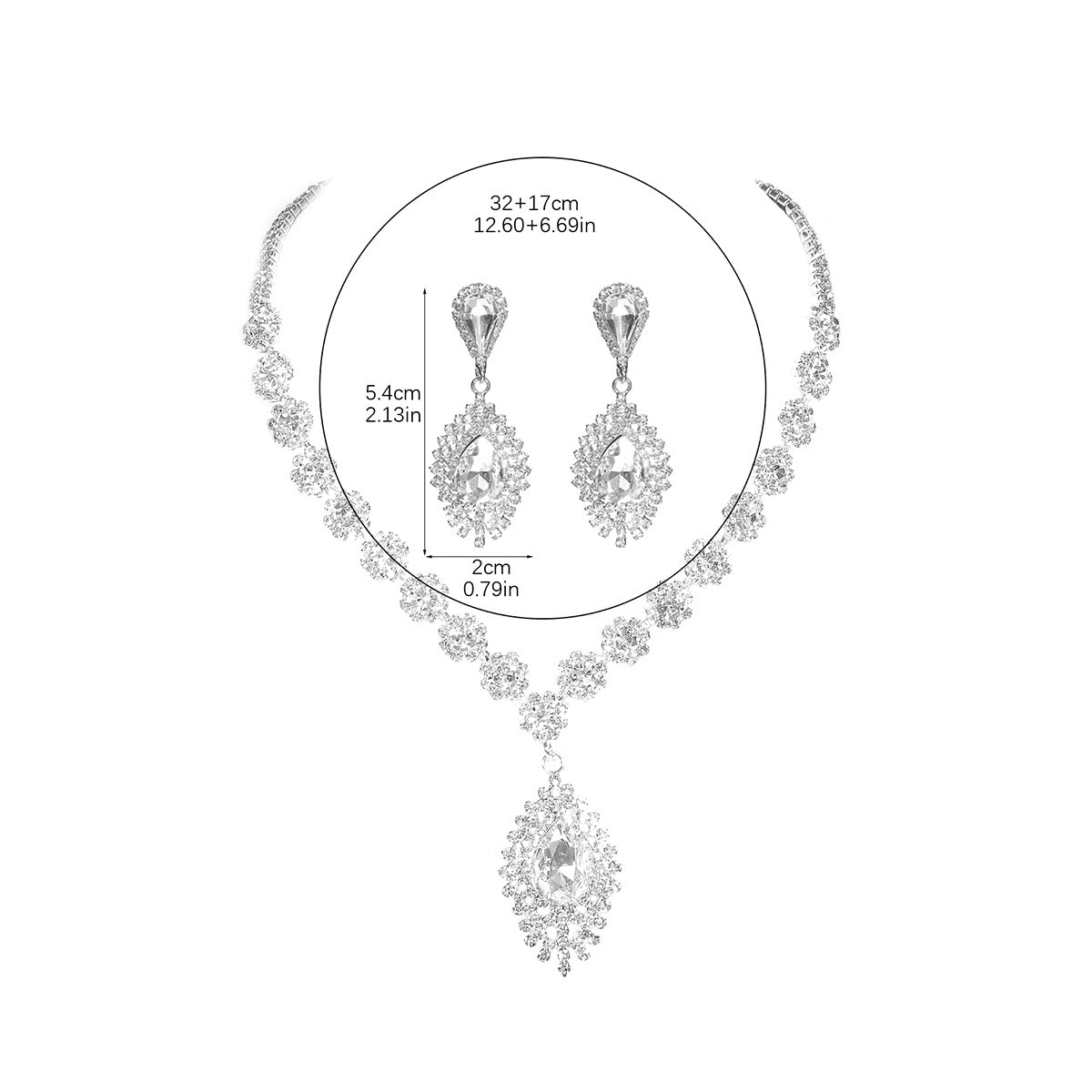 全铜 奢华闪亮水钻项链耳环套装 高级感气质项饰耳饰新娘首饰