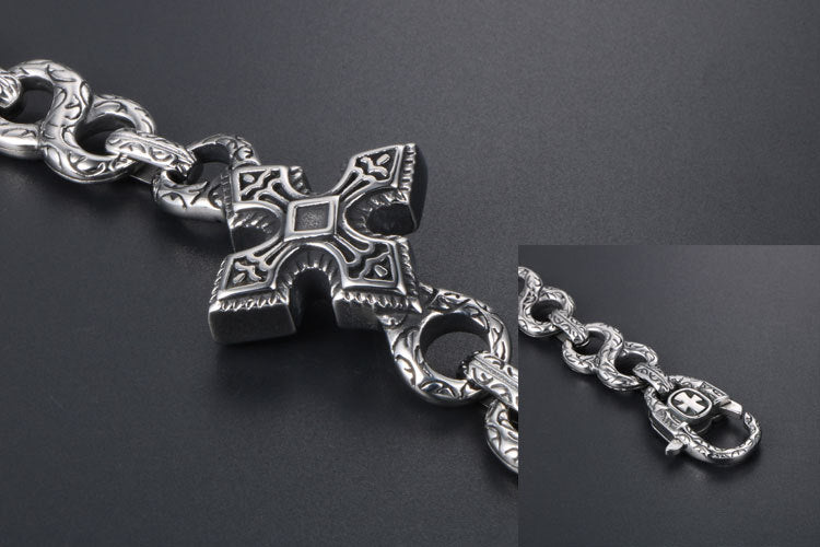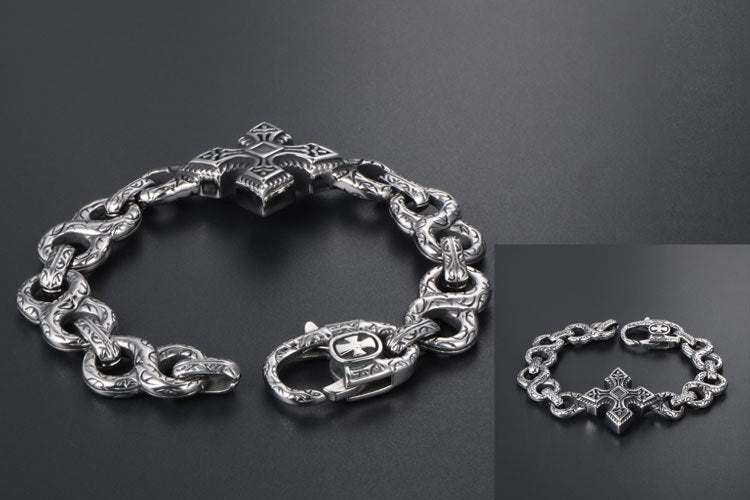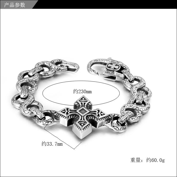 欧美朋克8字钛钢手链 潮男时尚手环 复古十字架花纹手饰CE147