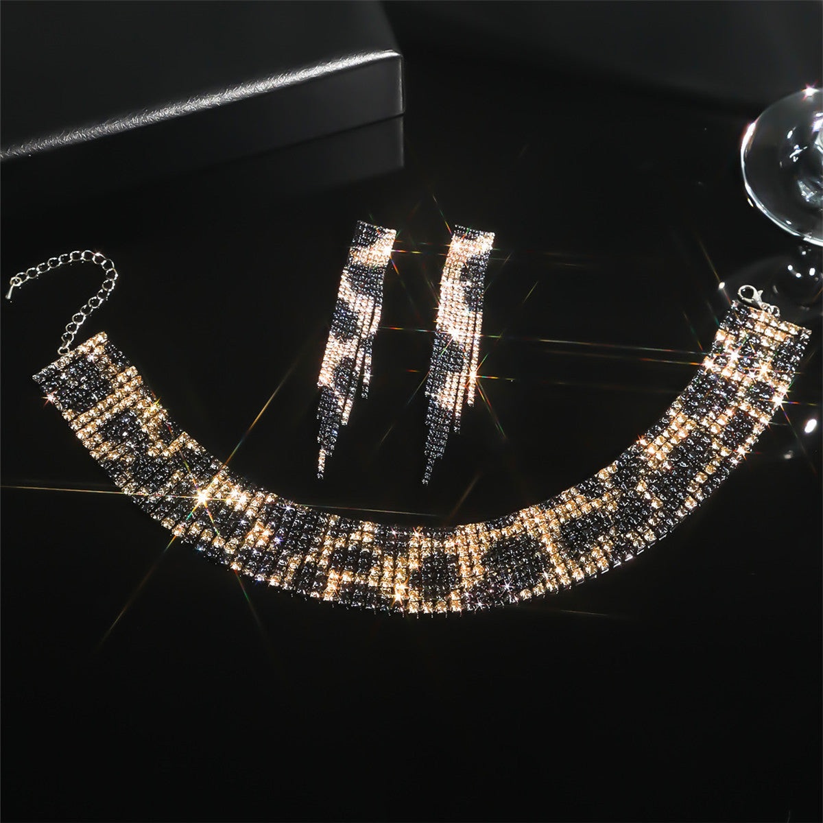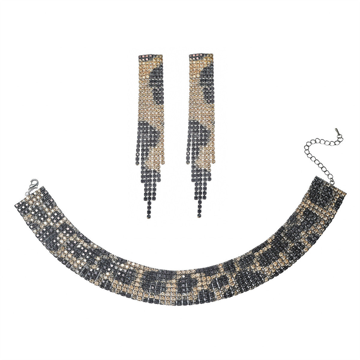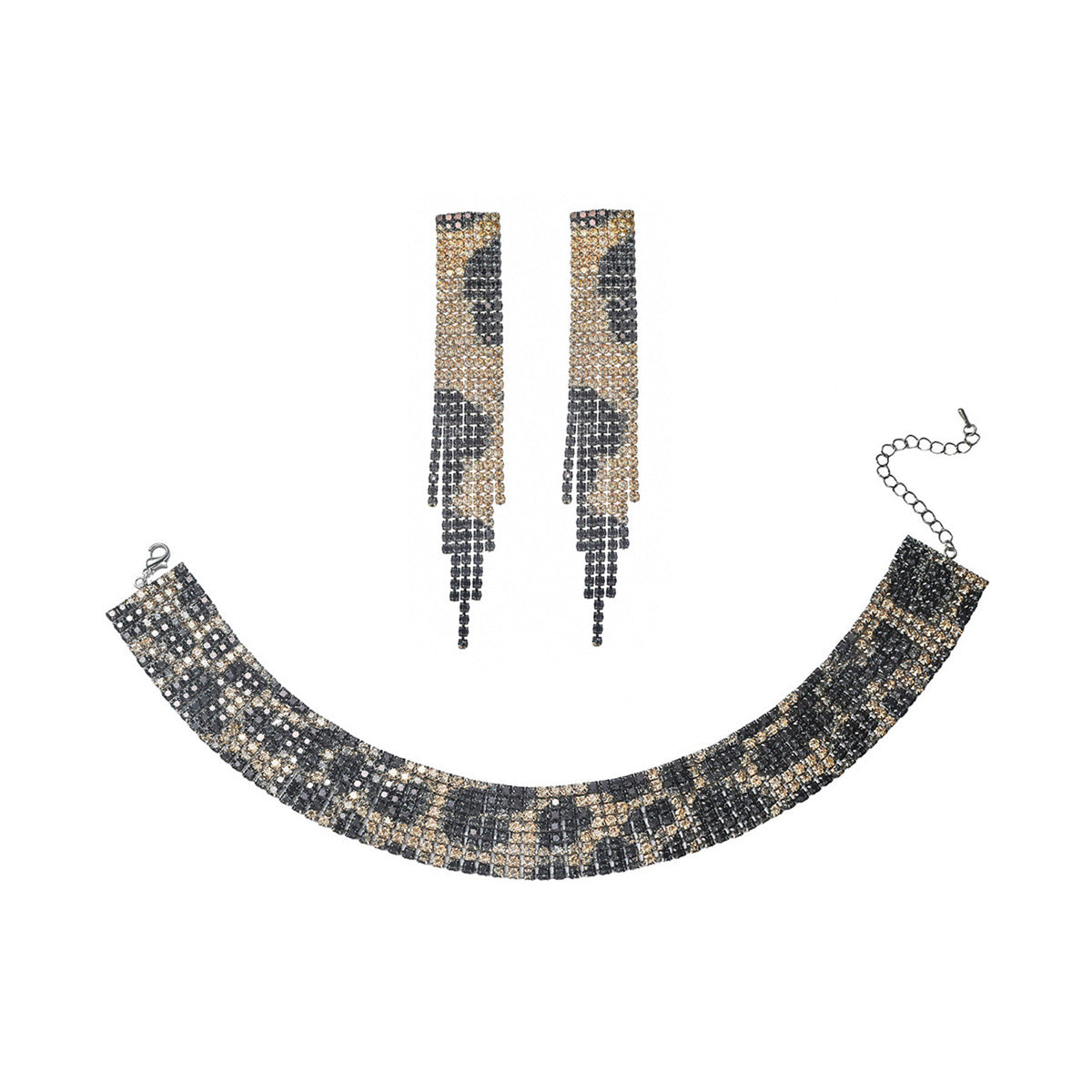 欧美跨境 奢华闪亮项链耳环两件套 豹纹新娘水钻首饰套装颈链饰品
