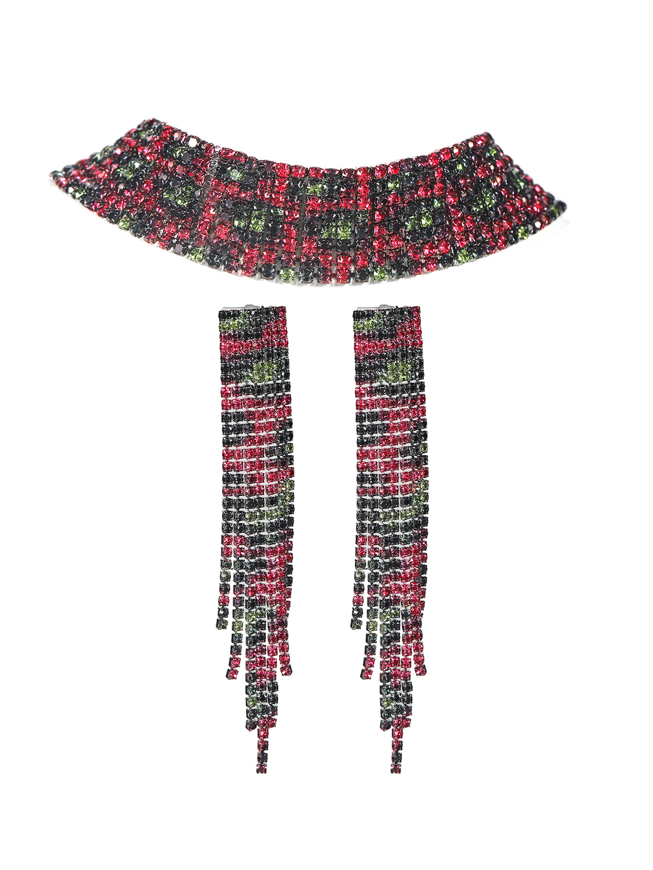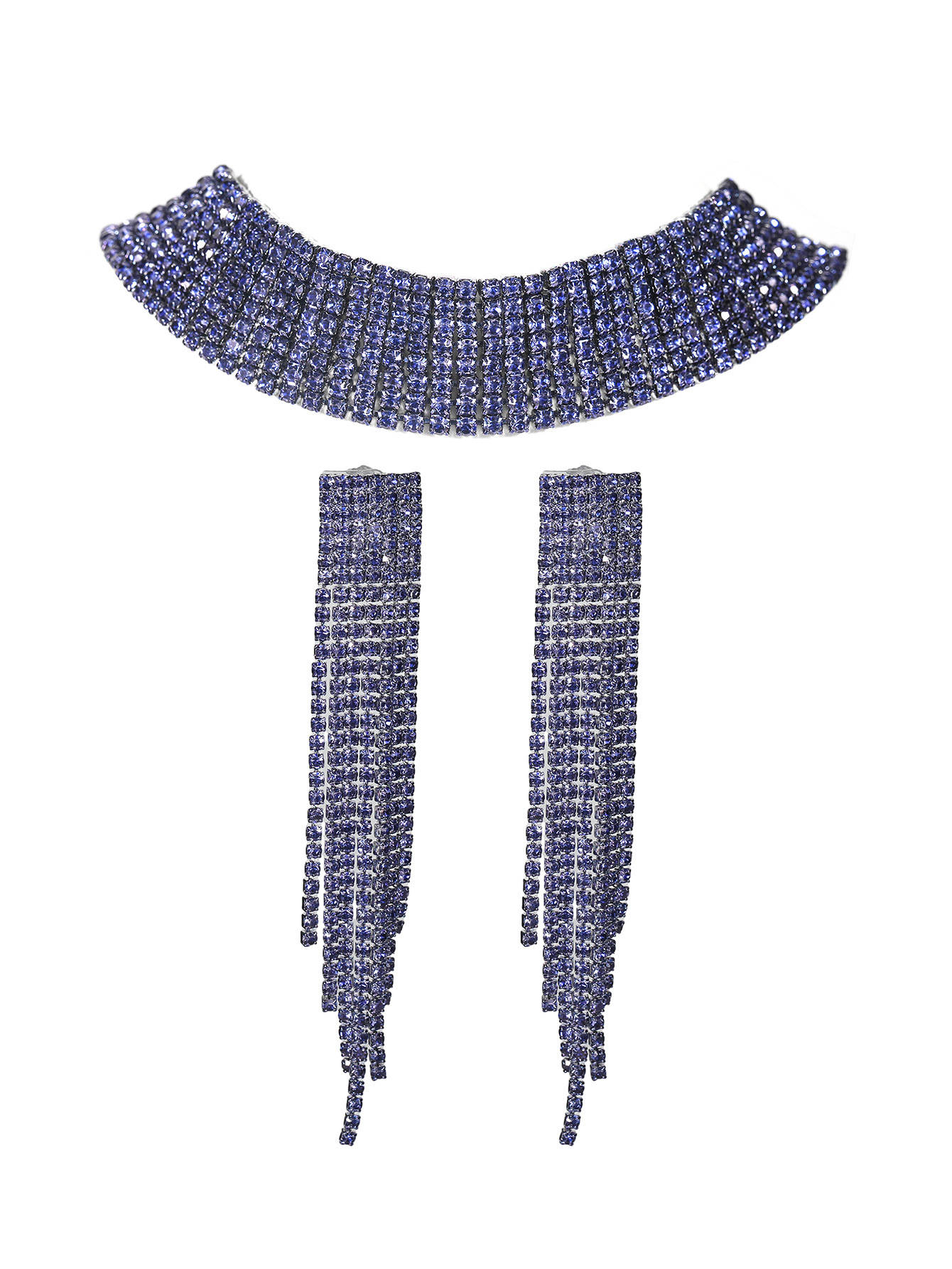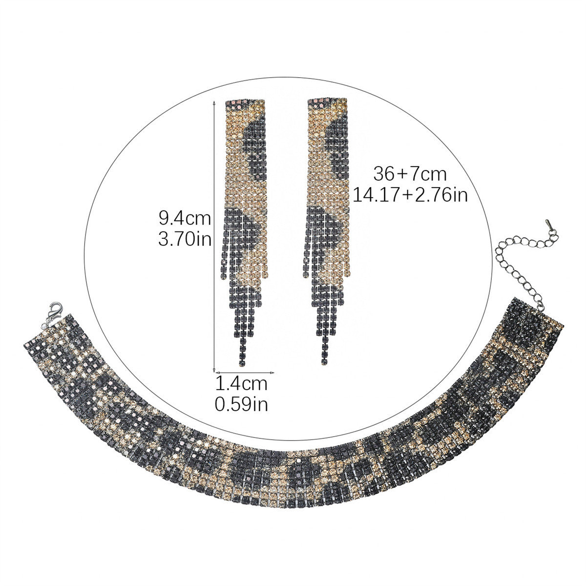 欧美跨境 奢华闪亮项链耳环两件套 豹纹新娘水钻首饰套装颈链饰品
