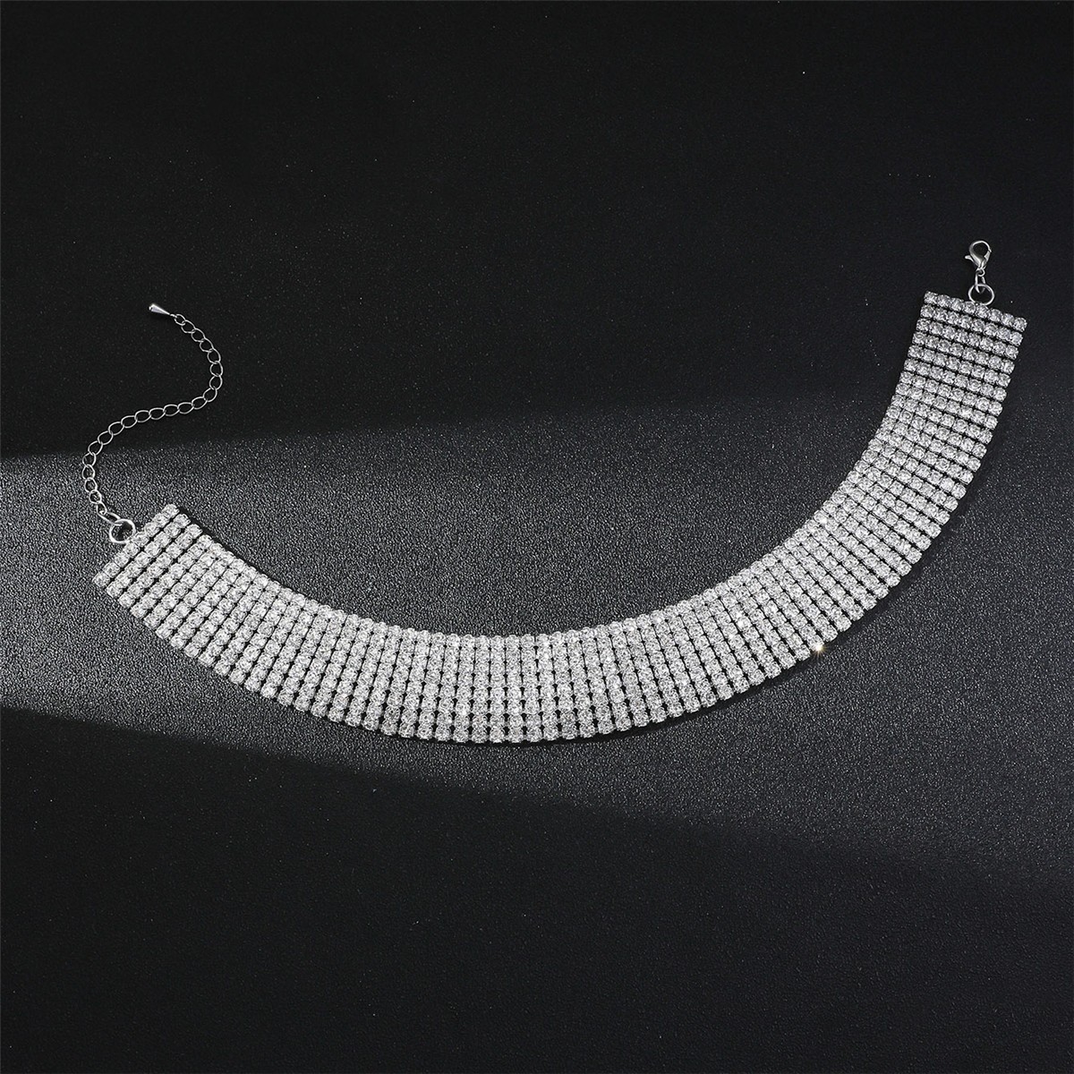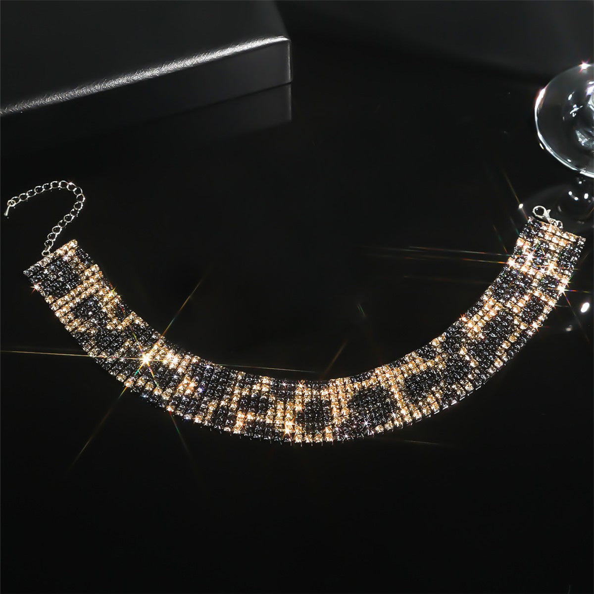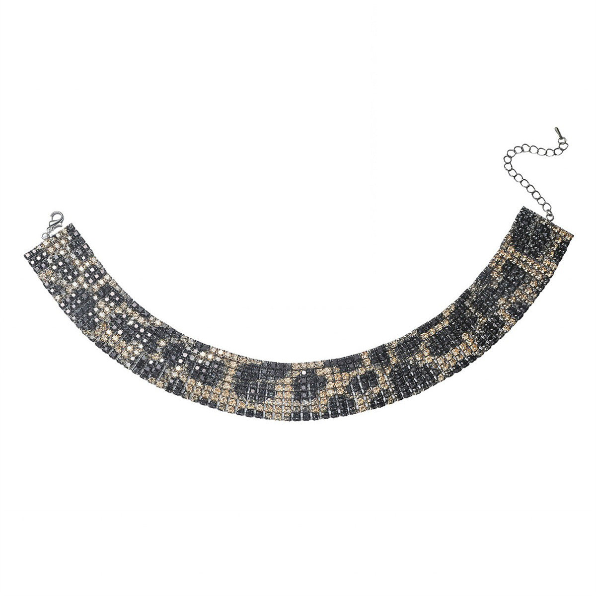 欧美跨境 8排高档奢华满钻豹纹项链锁骨链女 高级感网红项圈项饰