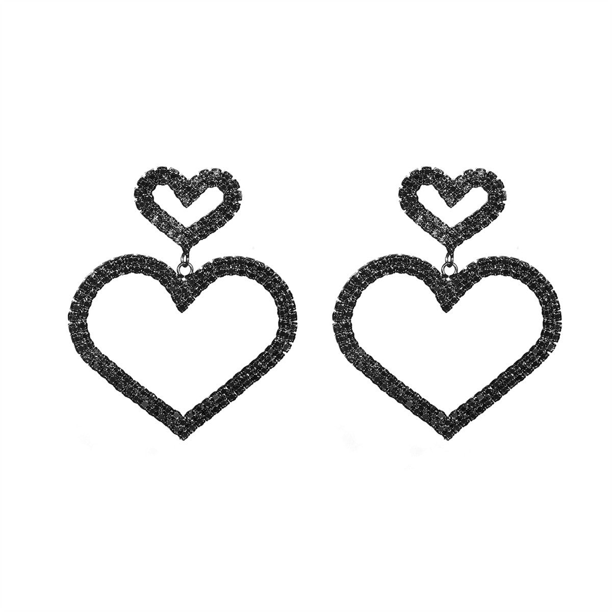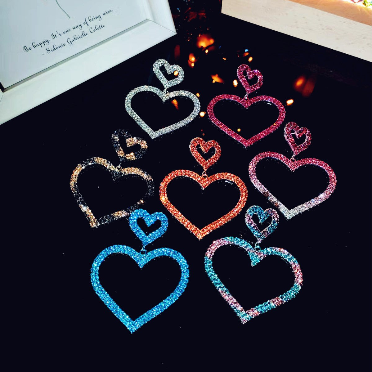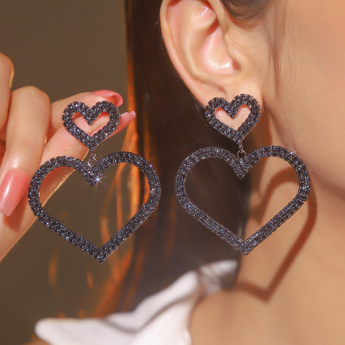 跨境情人节大爆款 奢华闪亮满钻爱心耳环女 时尚双桃心耳钉耳饰品