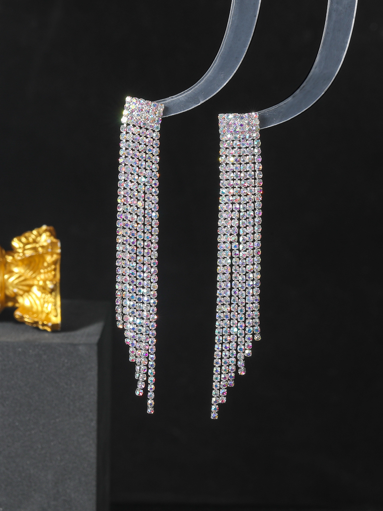 轻奢风小脸超闪AB水钻长款流苏耳环女 时尚气质耳钉饰品 earrings