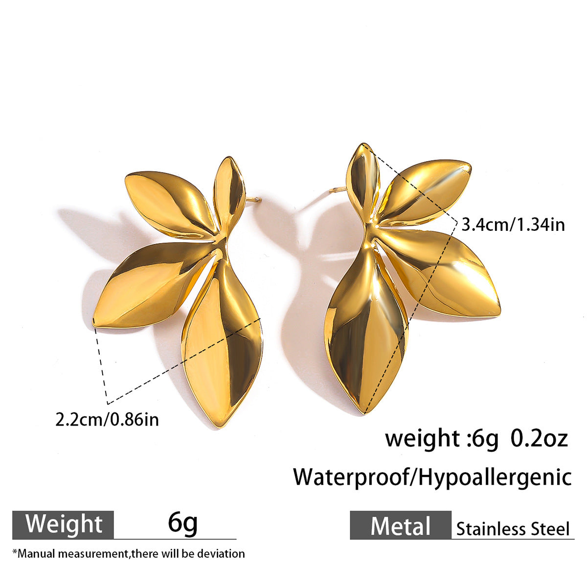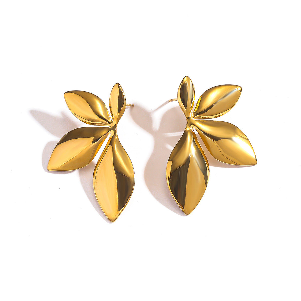 麦芽不锈钢钛钢树叶子花瓣花朵耳环耳钉女欧美跨境轻奢小众耳饰品