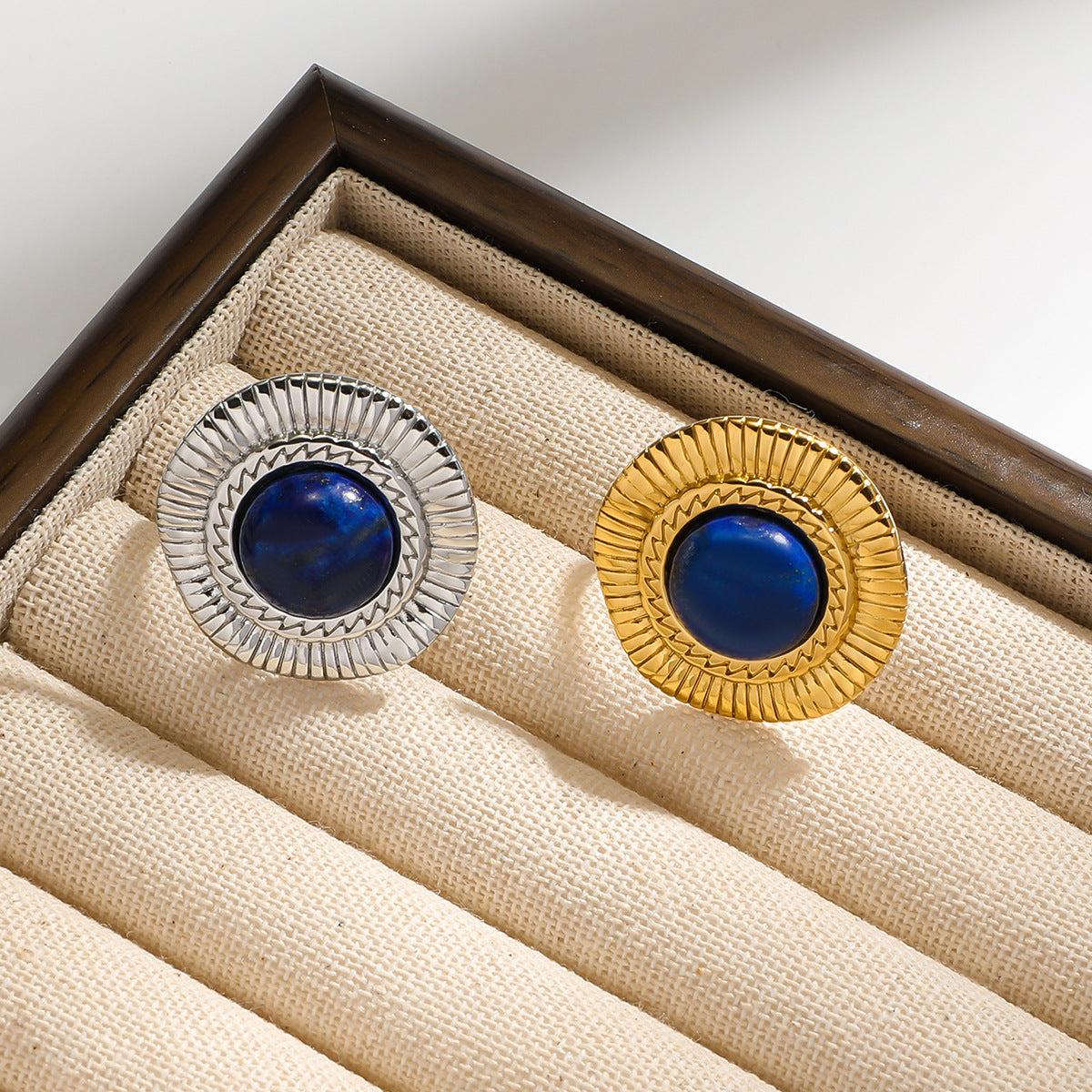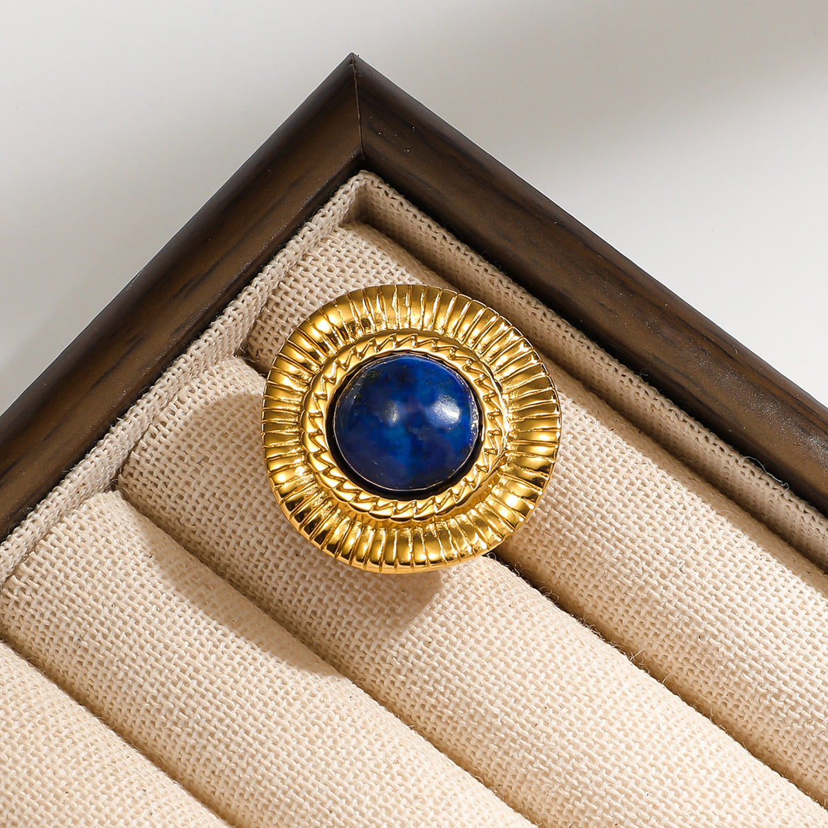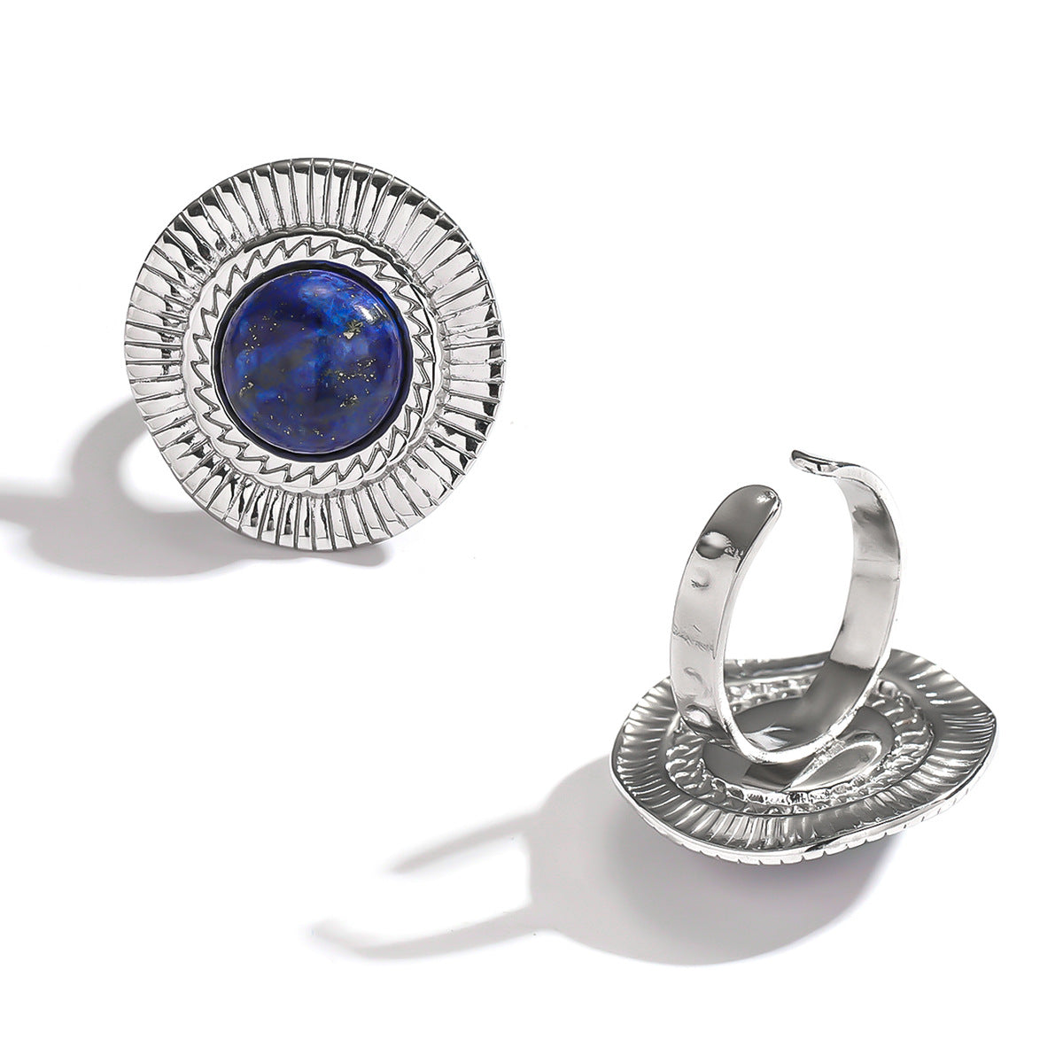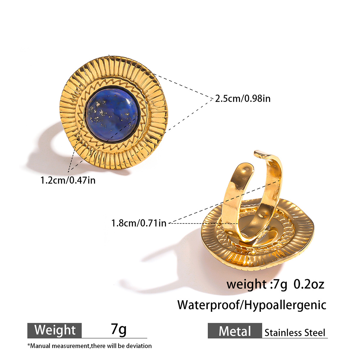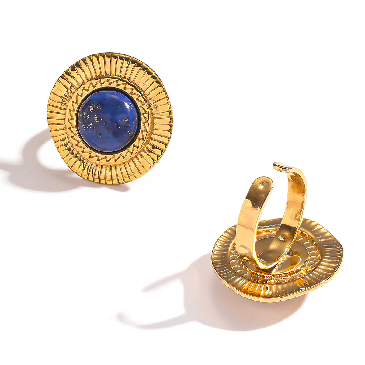 麦芽欧美复古宫廷风天然石戒指开口设计圆形荷叶指环轻奢小众手饰