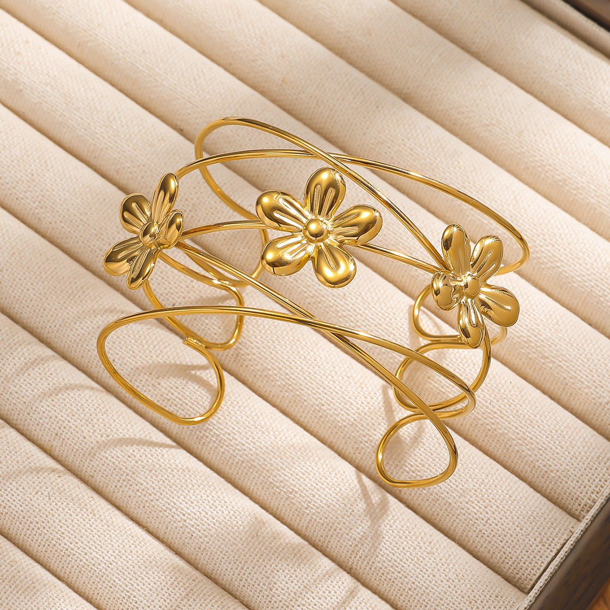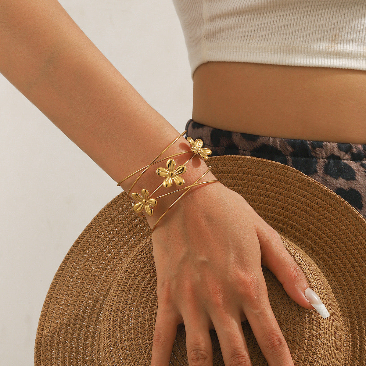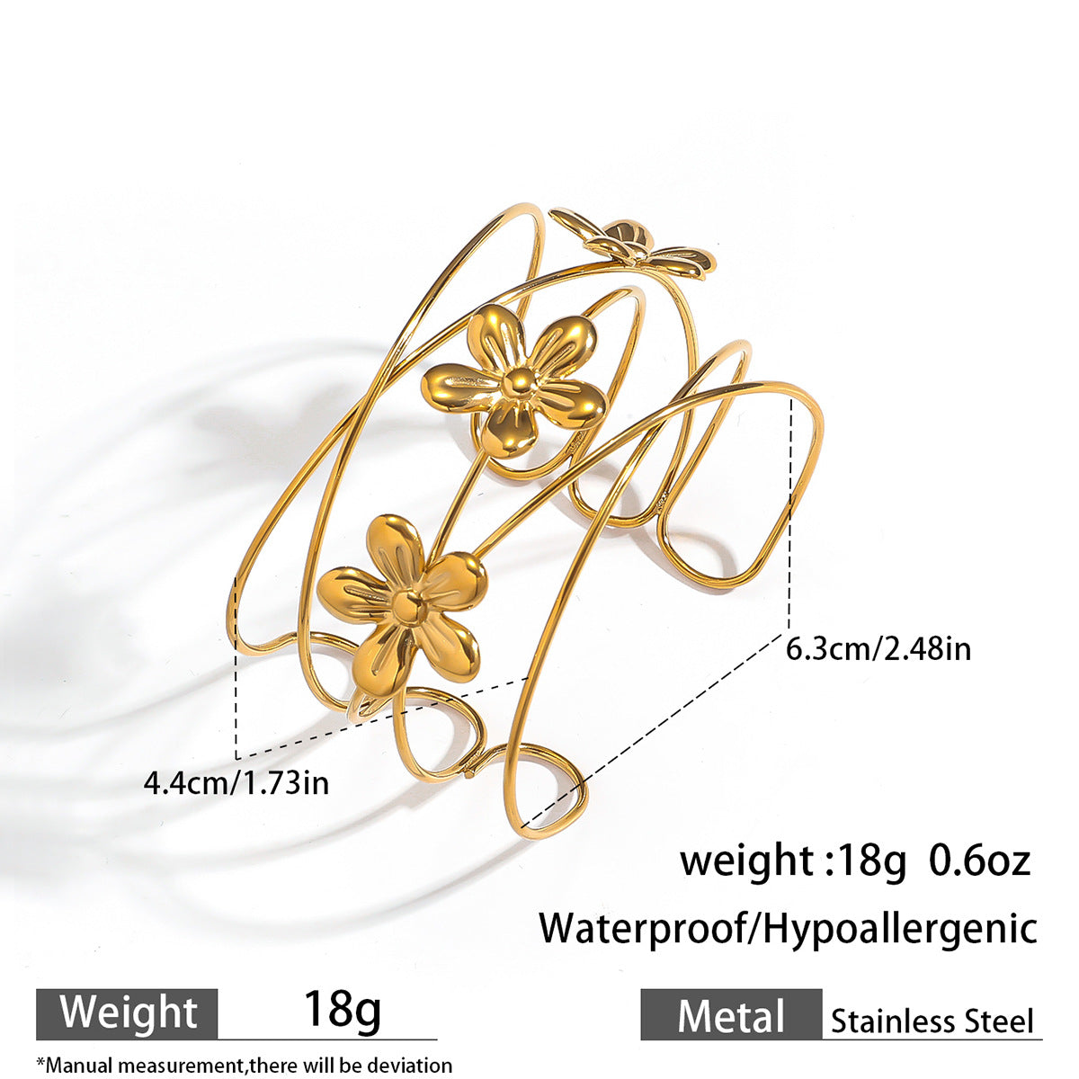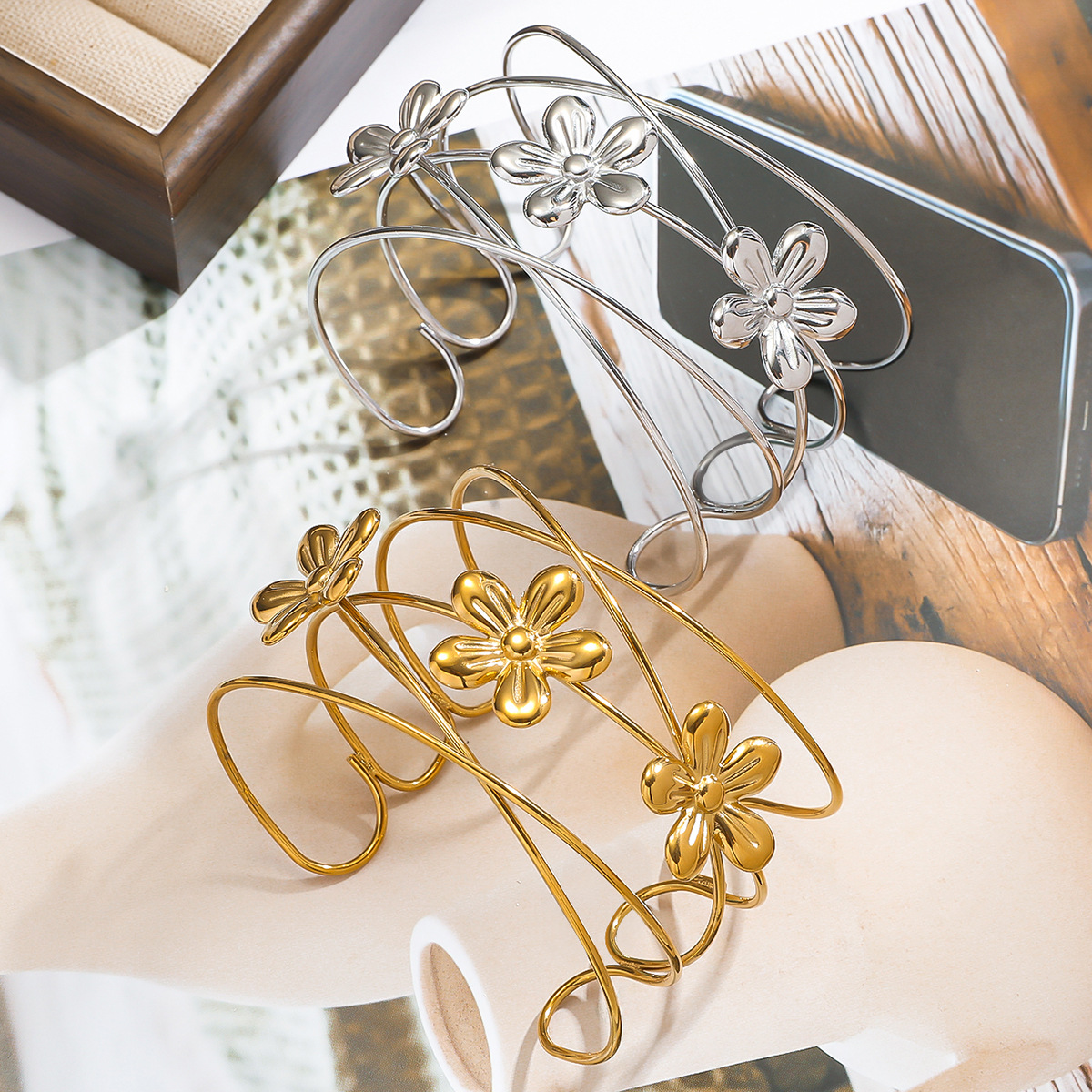 麦芽欧美时尚热销不锈钢花瓣花朵开口女士手镯手环度假风跨境手饰