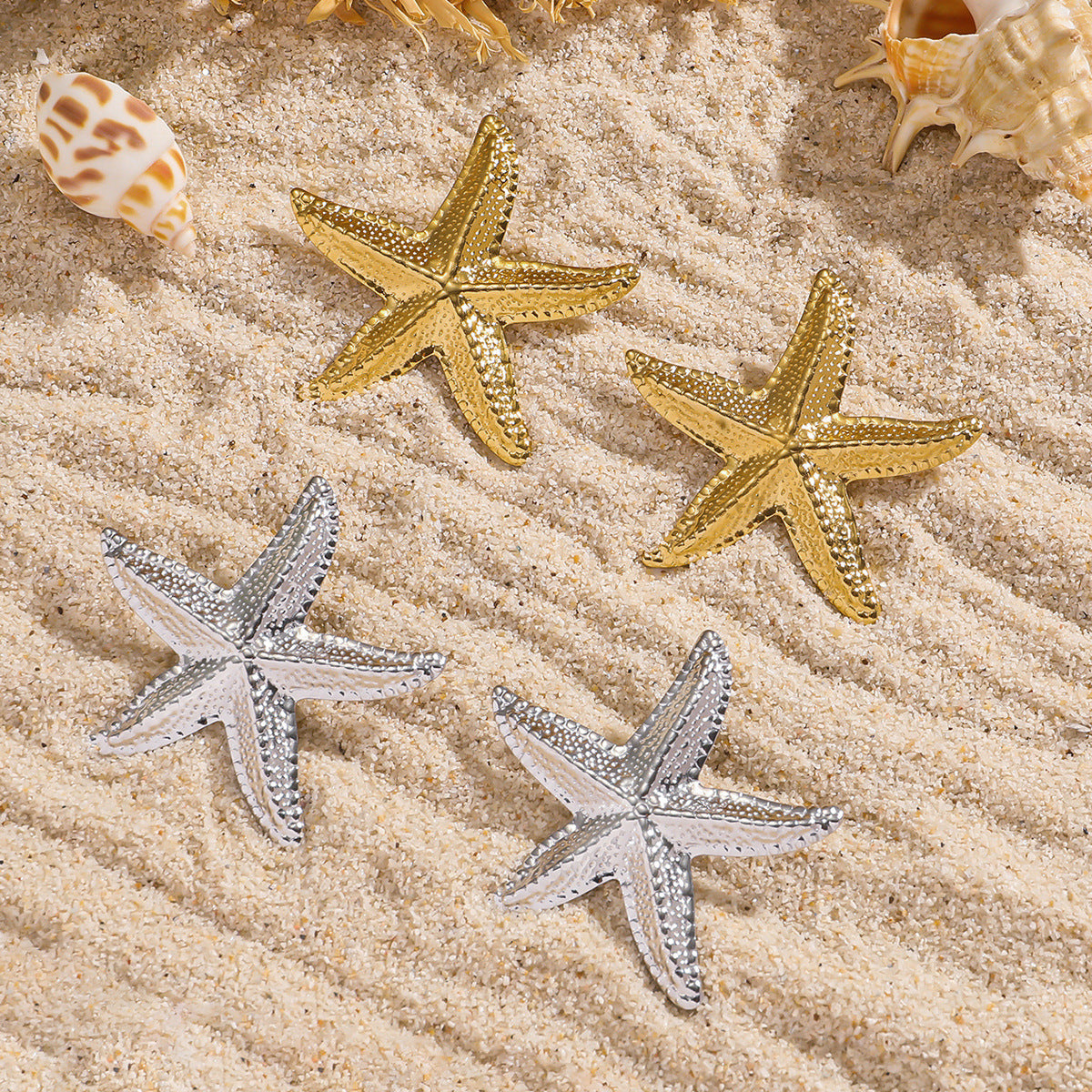 麦芽欧美跨境不锈钢海星星星耳钉女海洋风耳环个性时尚设计感耳饰
