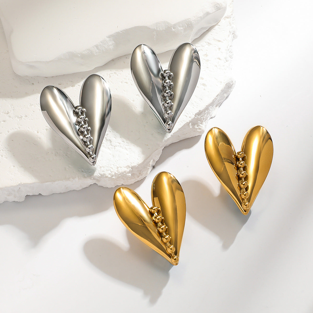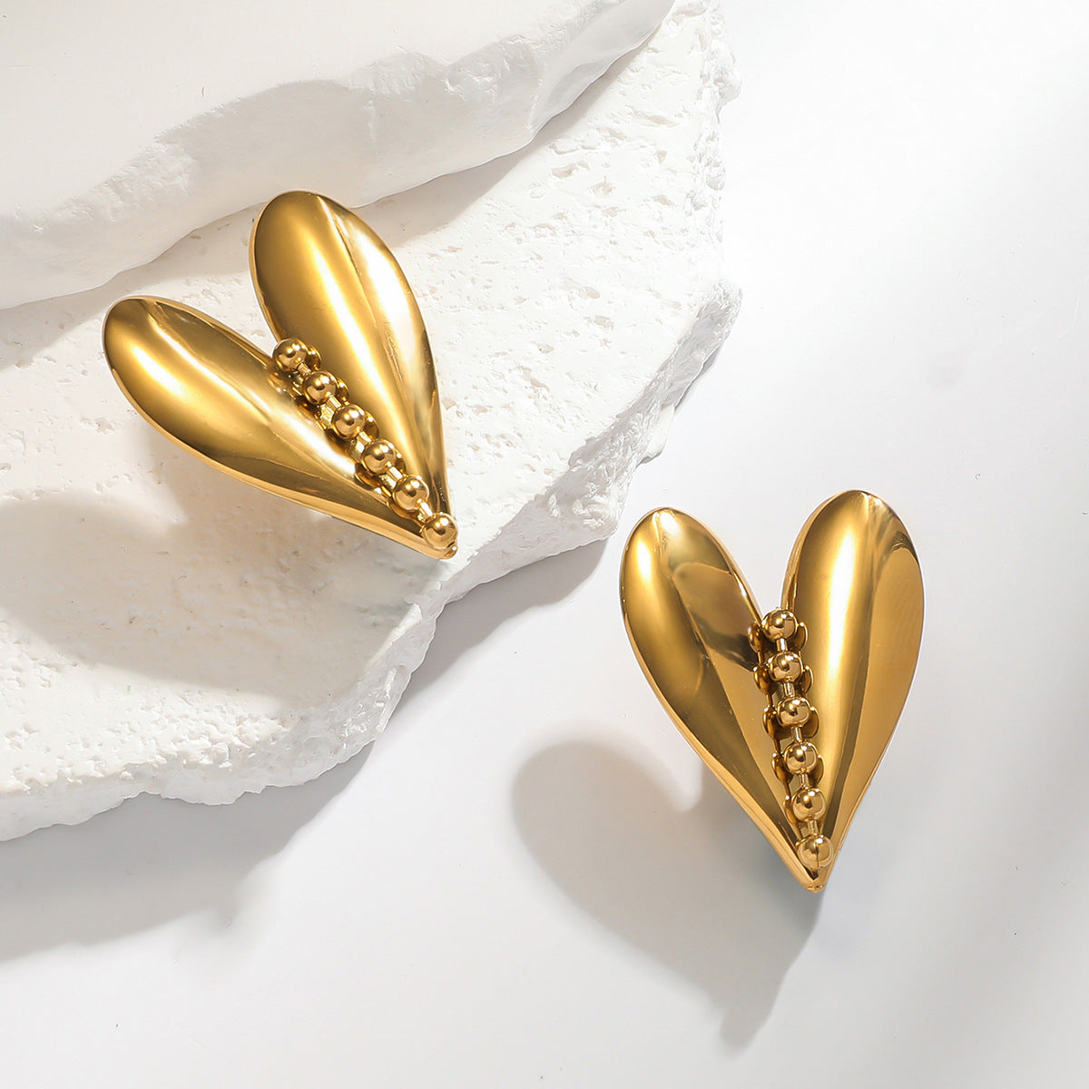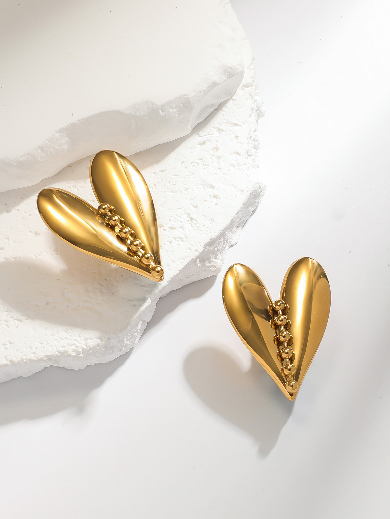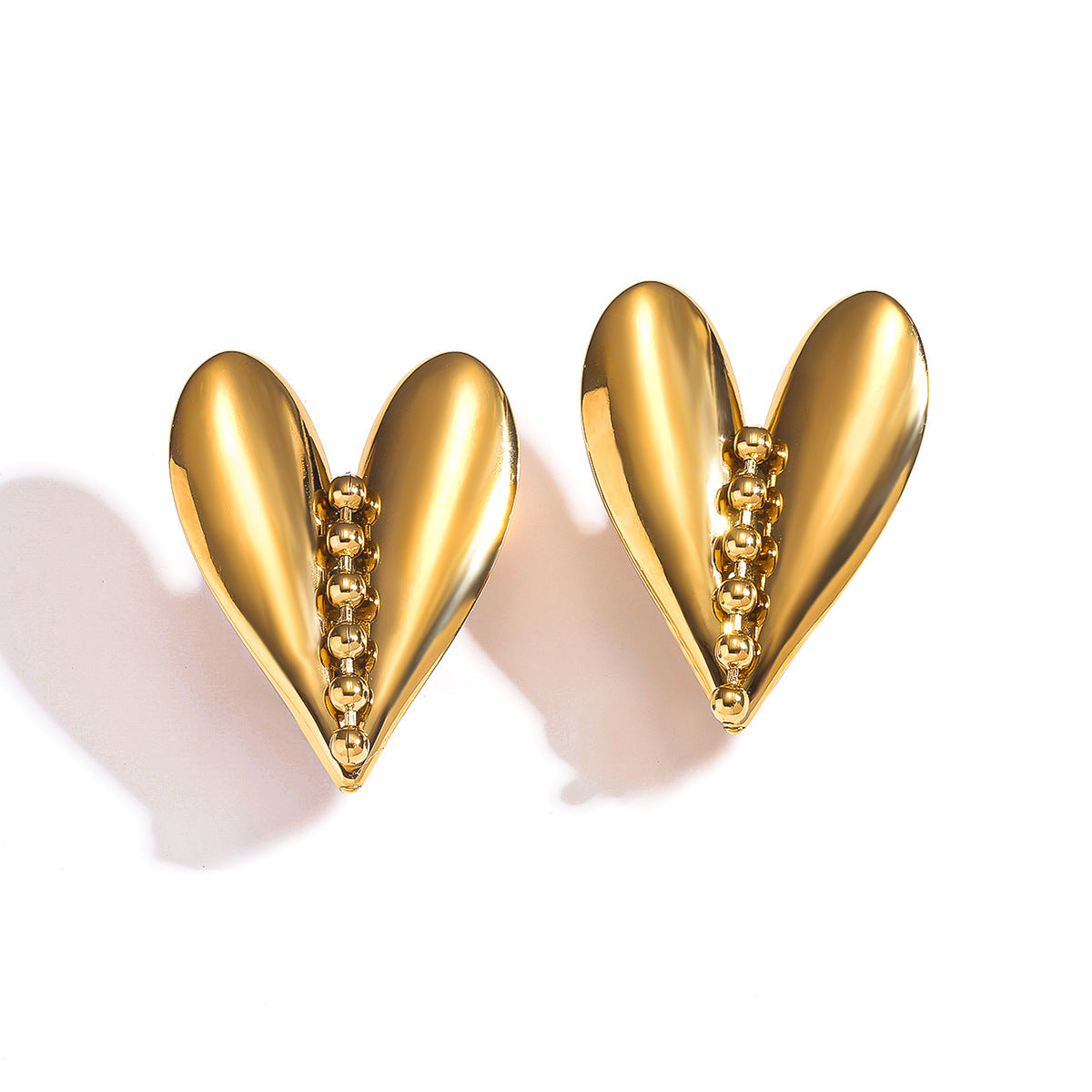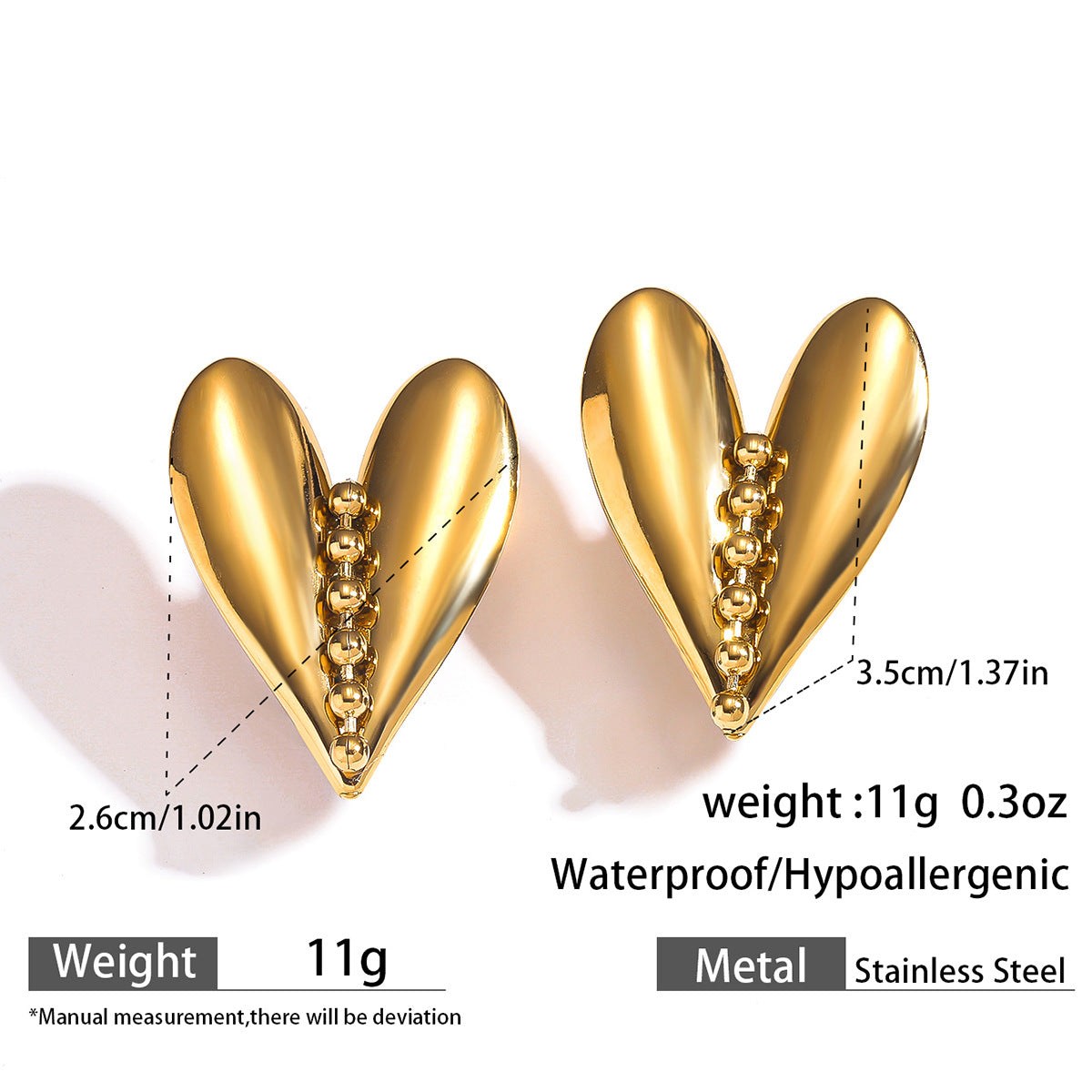 麦芽欧美跨境不锈钢钛钢爱心耳环耳钉女士设计感18k金耳饰earings