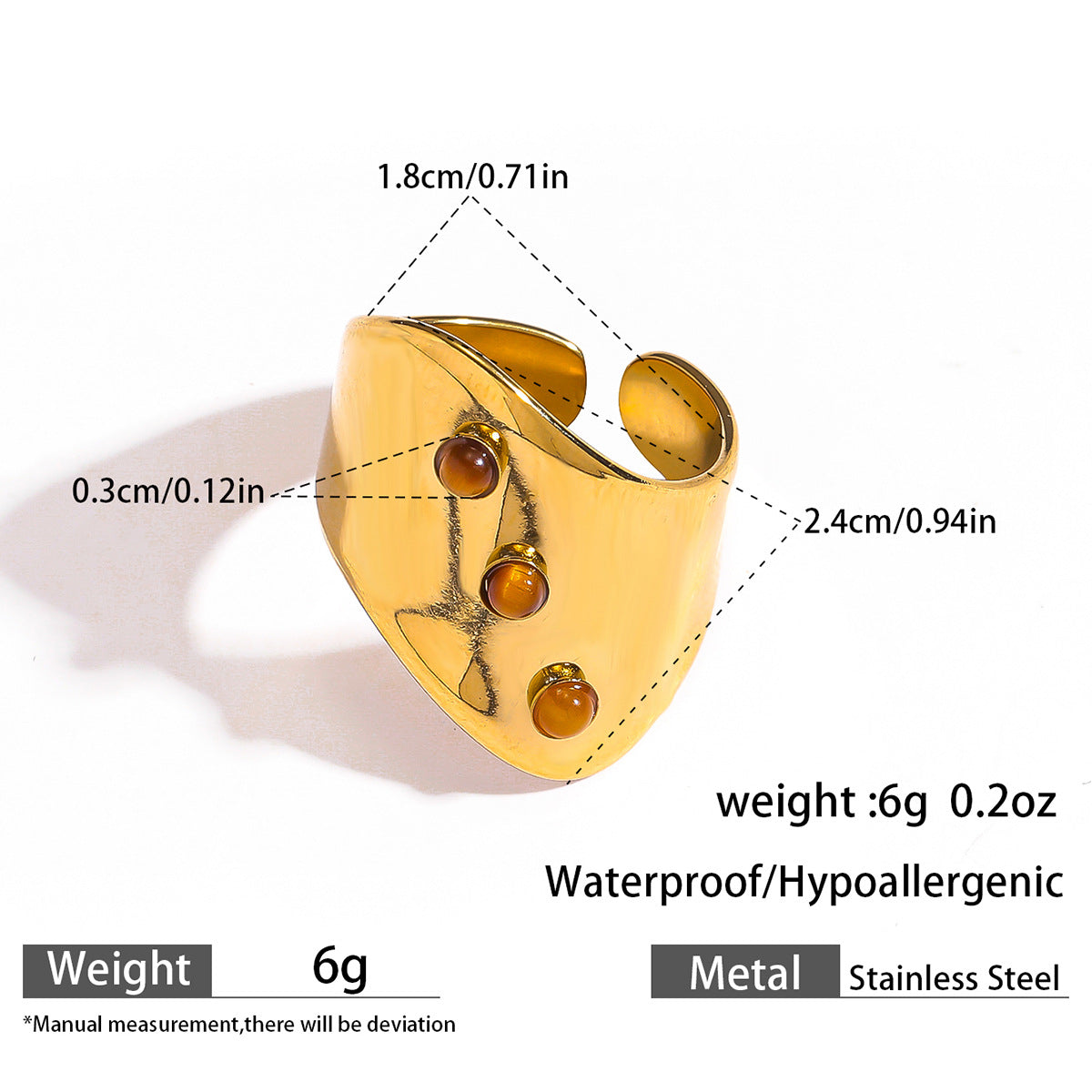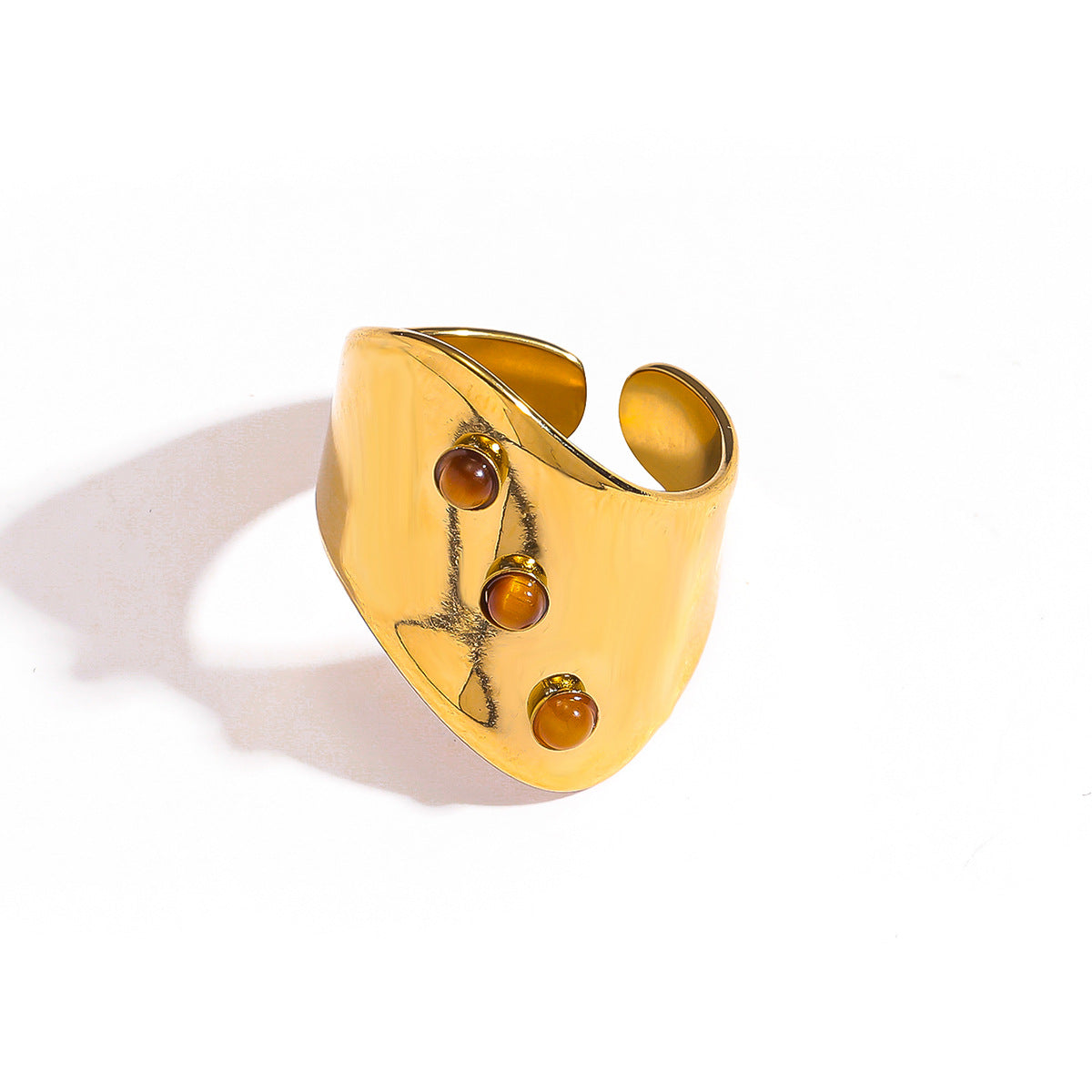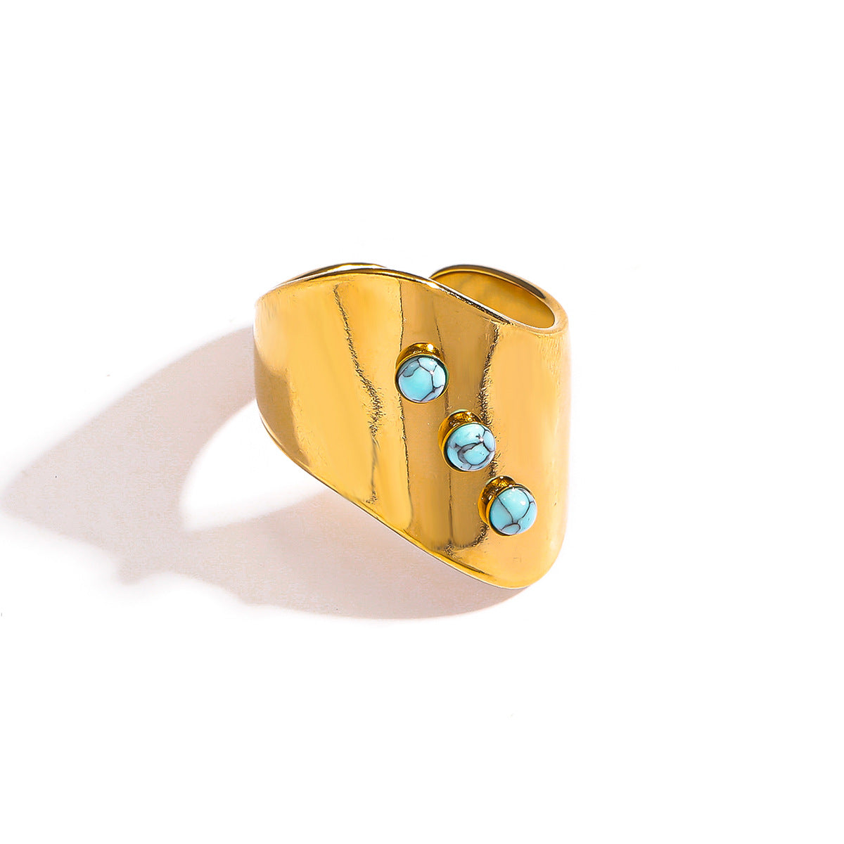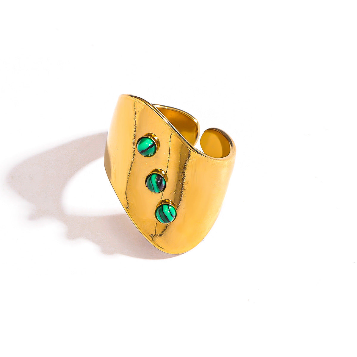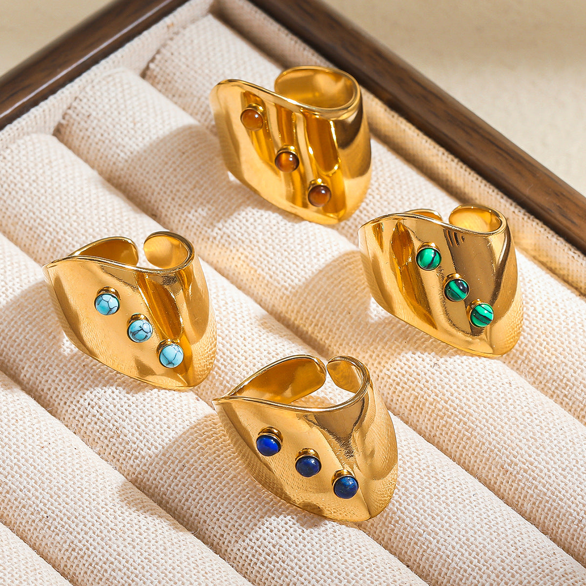 麦芽欧美ins风指环不锈钢18K金镶彩色天然石戒指女轻奢高级感手饰