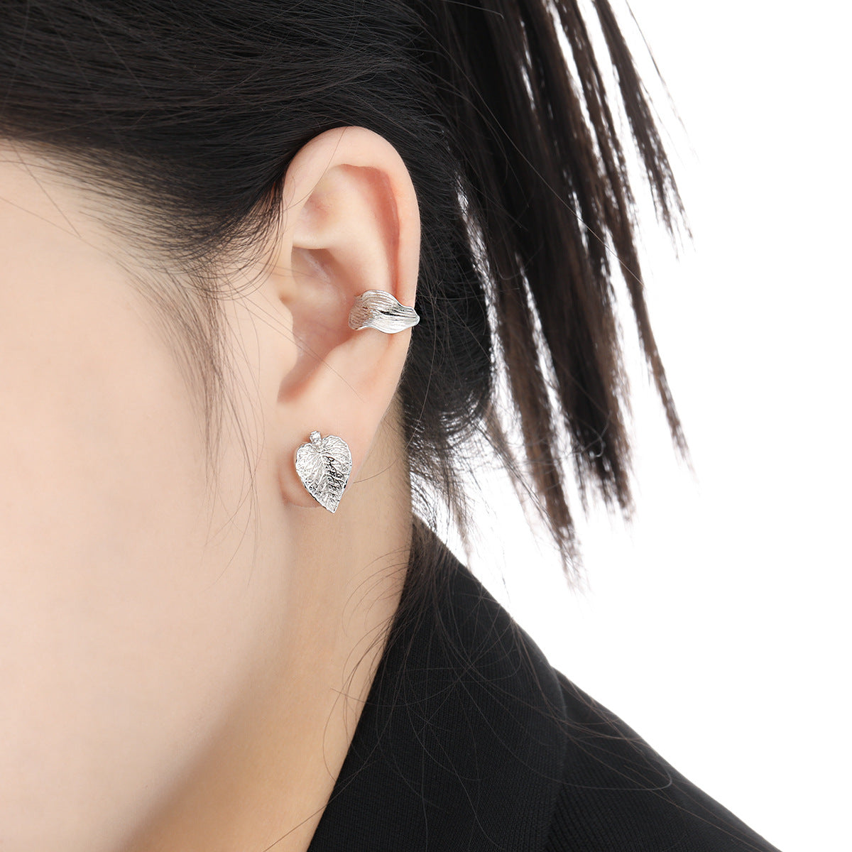 711哑光拉丝纹理耳夹女冷淡风S925纯银小众个性ins气质简约银耳饰