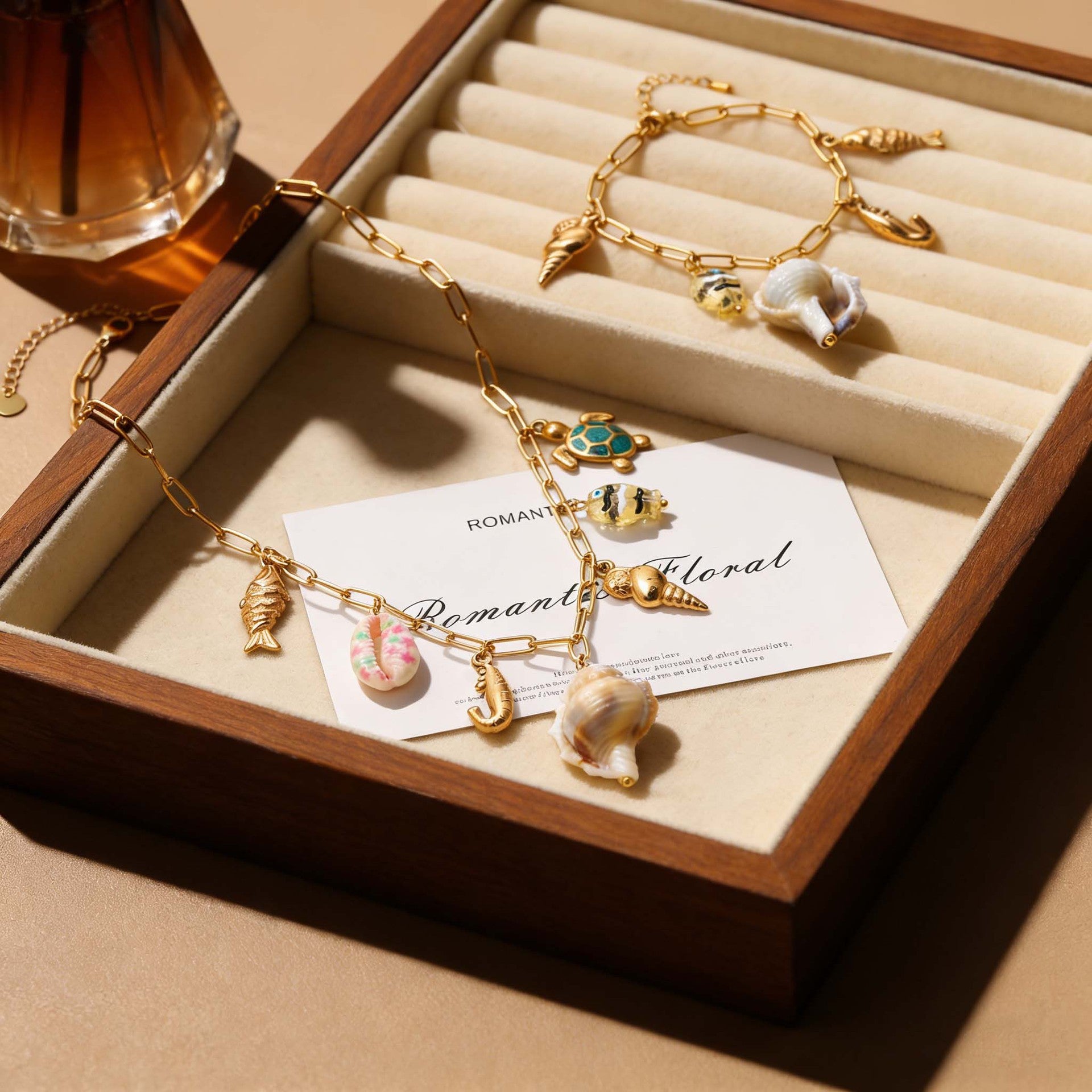 Bohemian-style conch shell necklace and bracelet