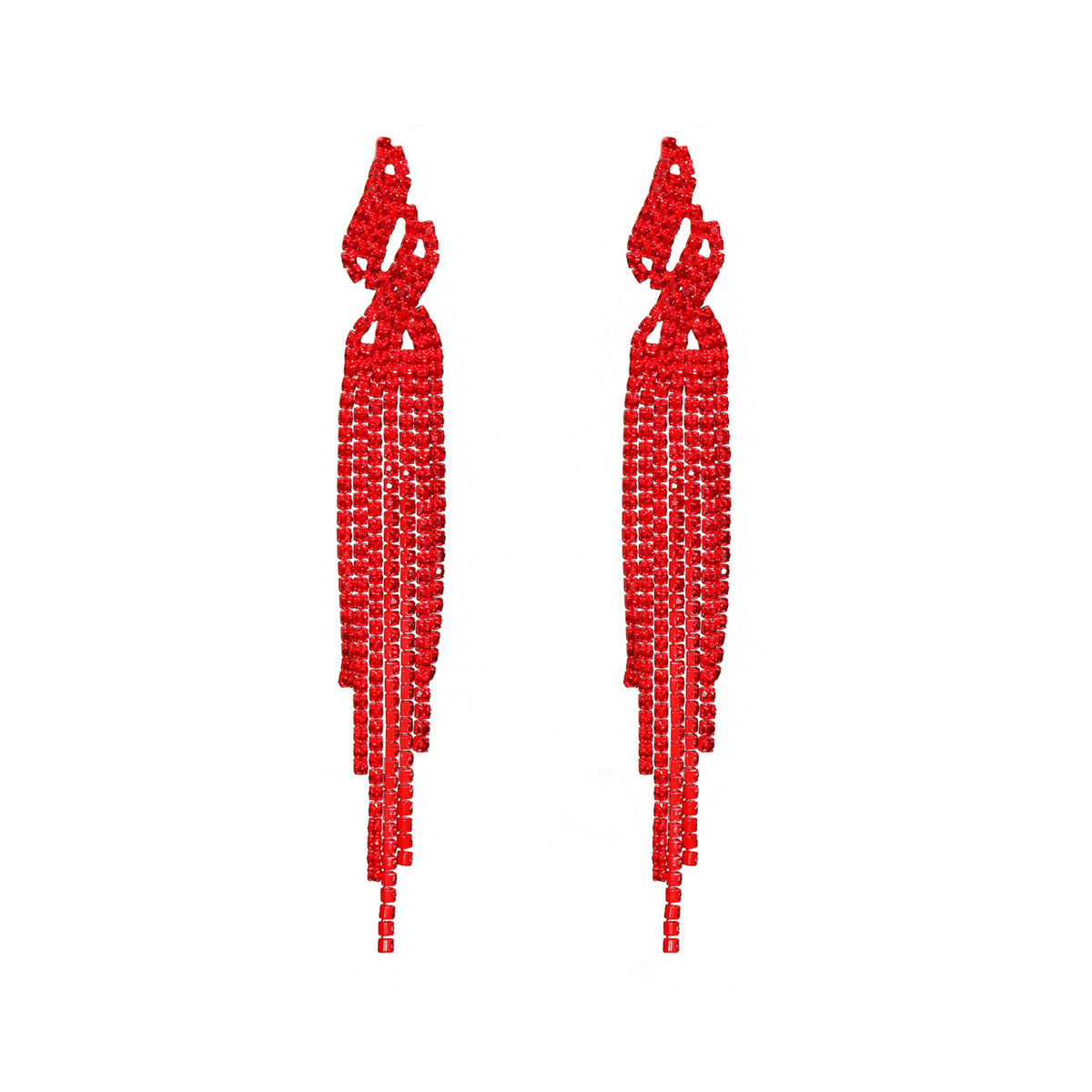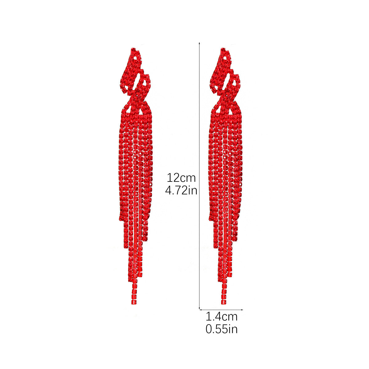 DINGKA时尚气质闪亮满钻长款流苏耳环女 高级感红色耳钉耳饰品