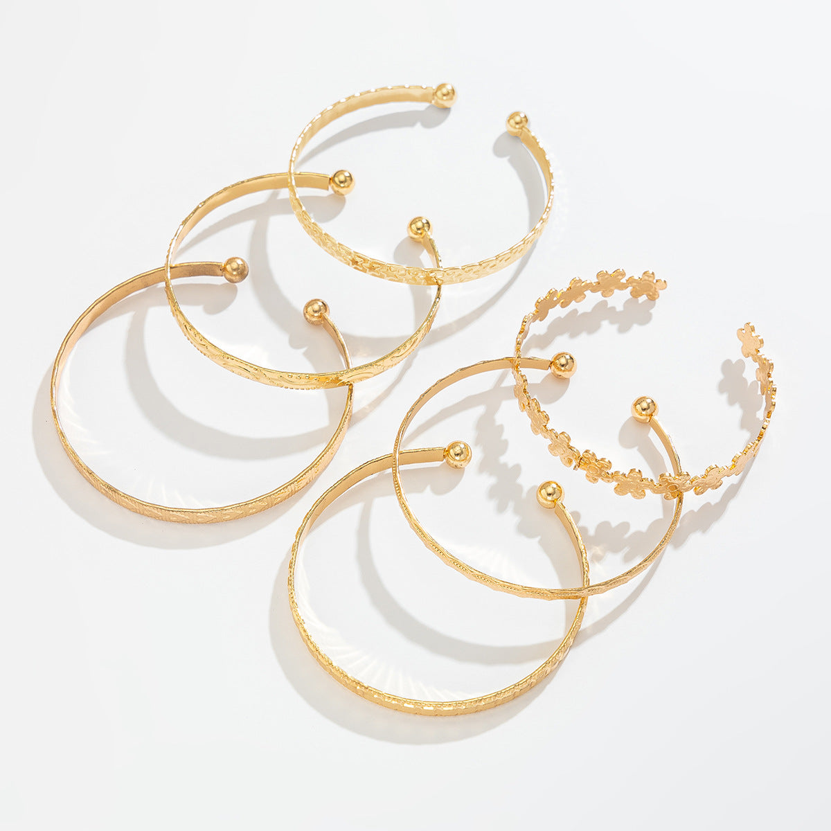 Sweet & Cool Carved Pattern Flower Bracelet, Fashionable Metal Texture Stackable Bangle