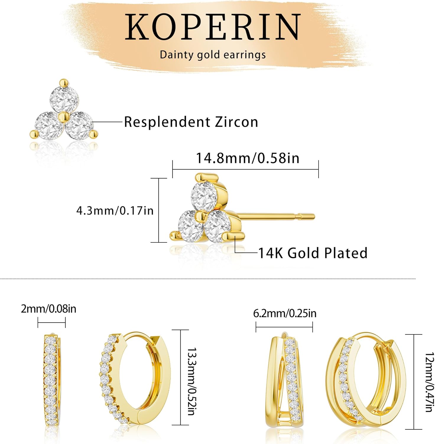 Gold Hoop Earrings for Women, 14K Gold Plated Hypoallergenic Cubic Zirconia Earrings Trendy Small Dainty Gold Hoops Earrings Set Jewelry Multiple Piercing Gifts for Women