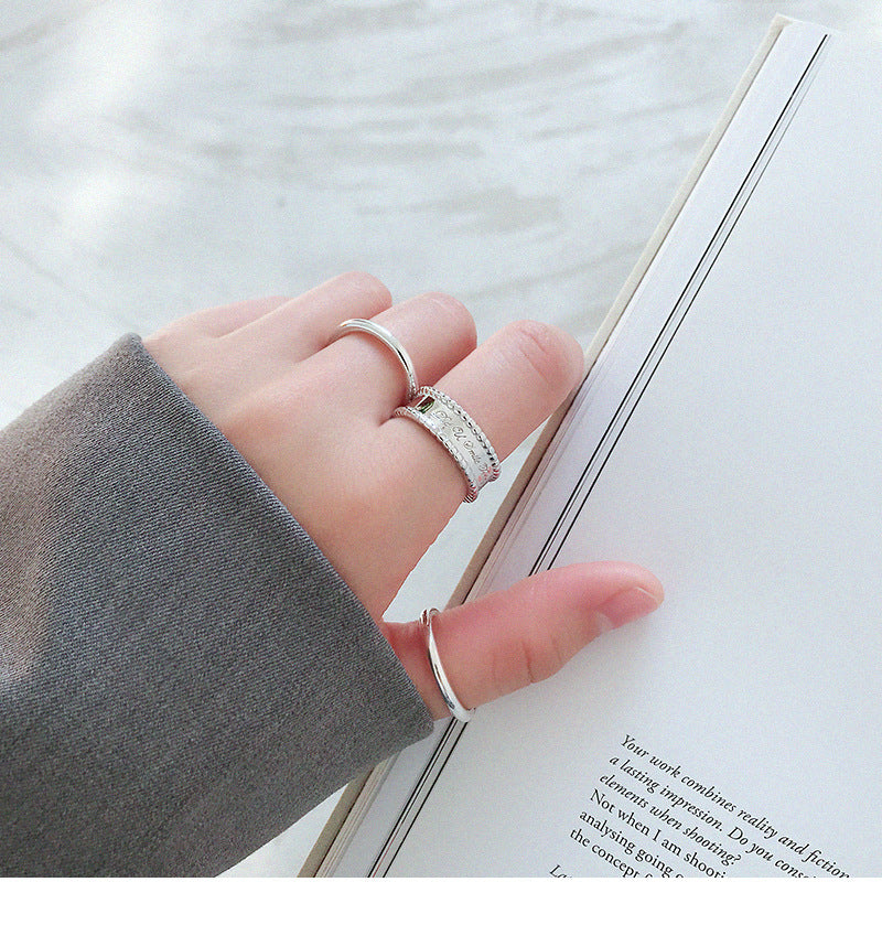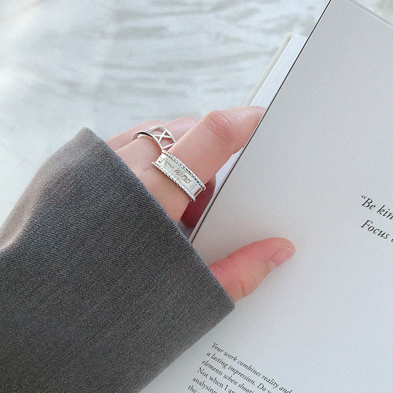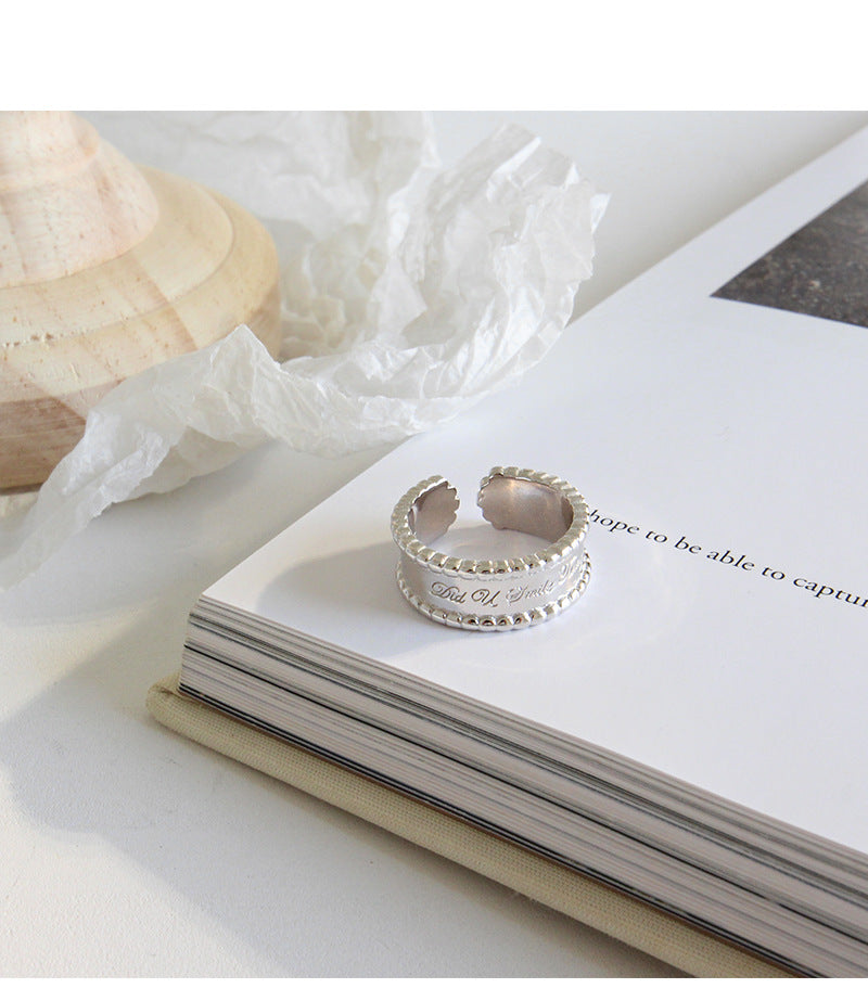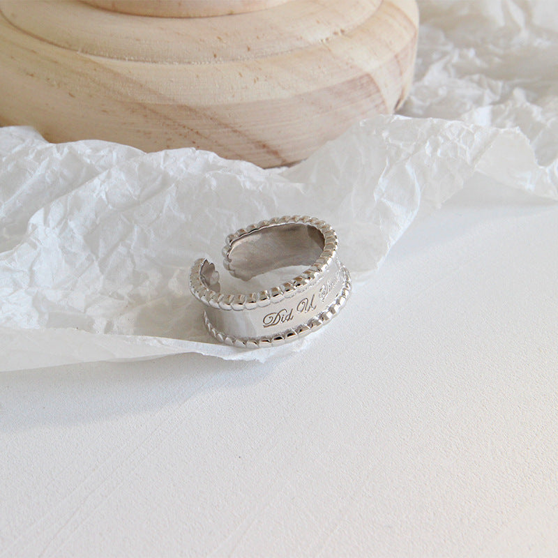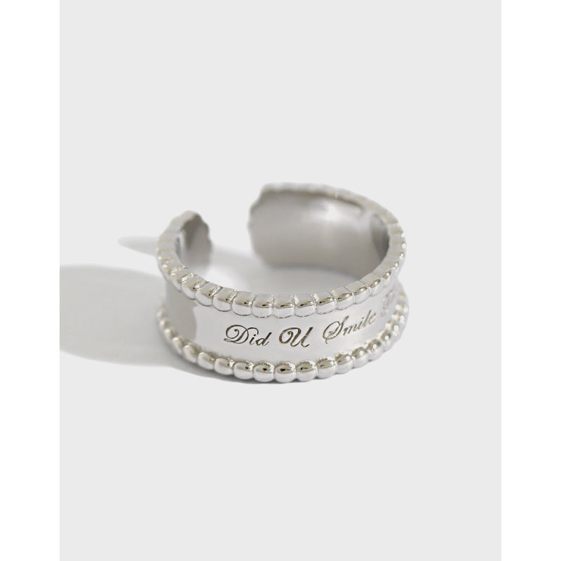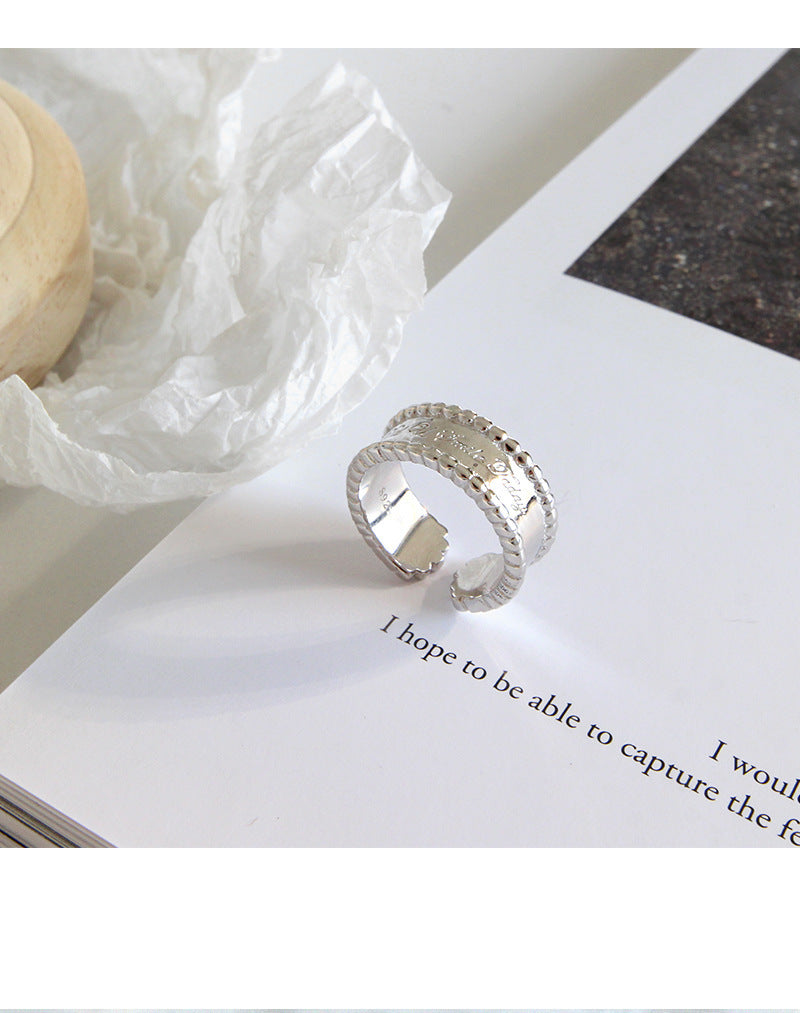 HJZ475 韩版S925纯银时尚个性CHIC风简约圆珠边宽面英文开口戒指