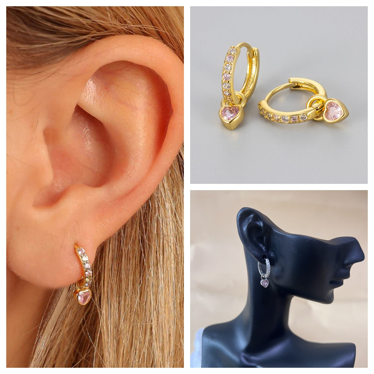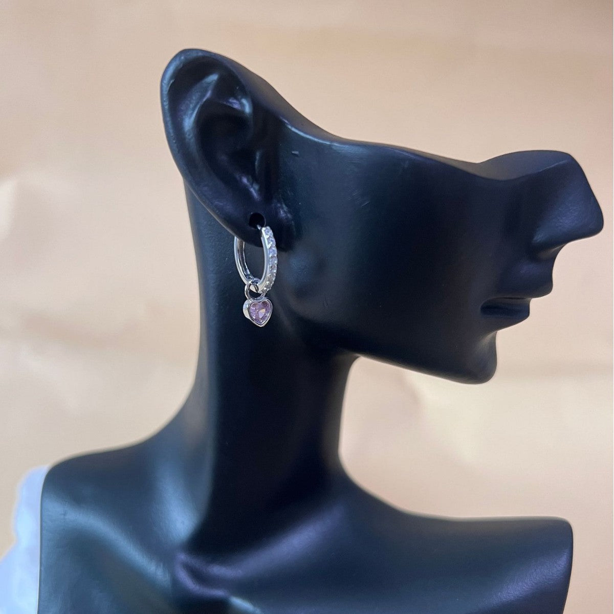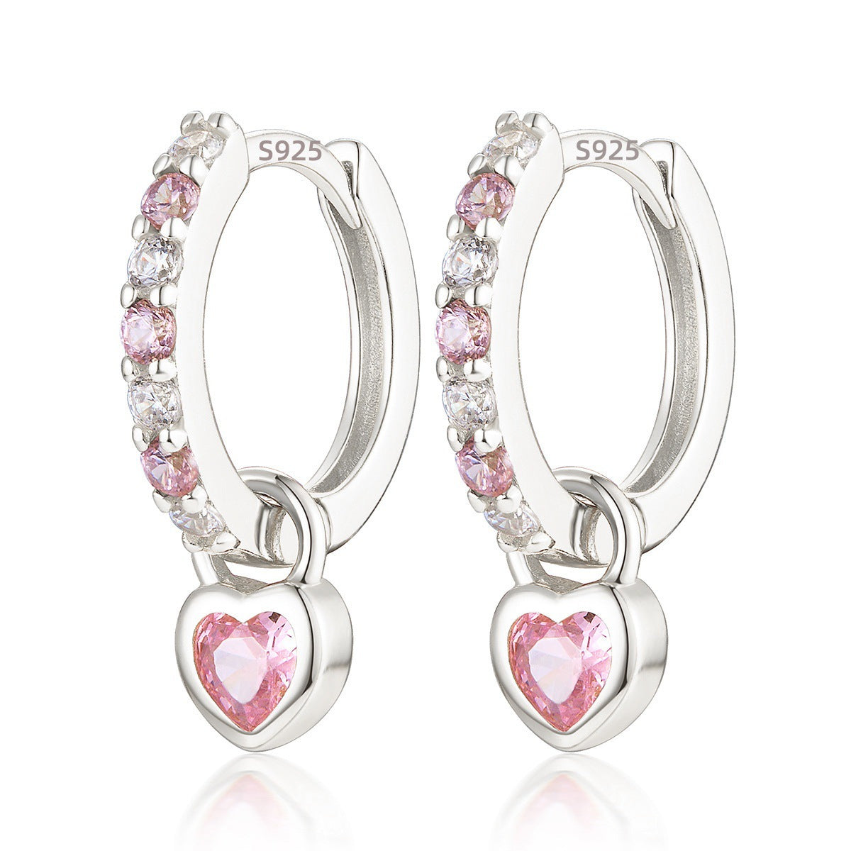 S925纯银针耳扣亚马逊跨境粉色心形吊坠耳环热卖环状耳环女士耳圈