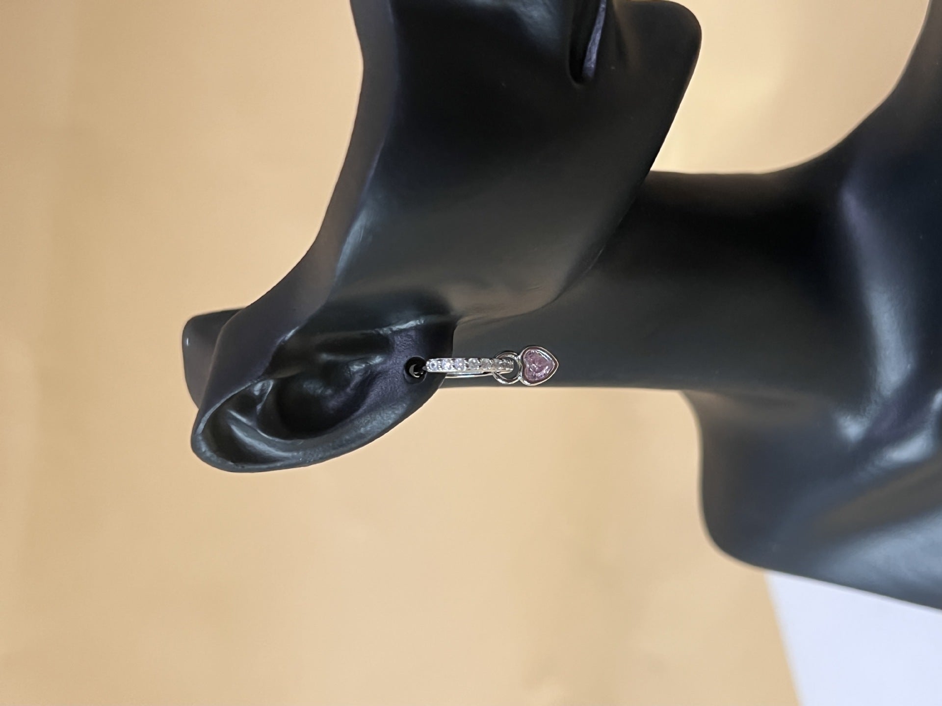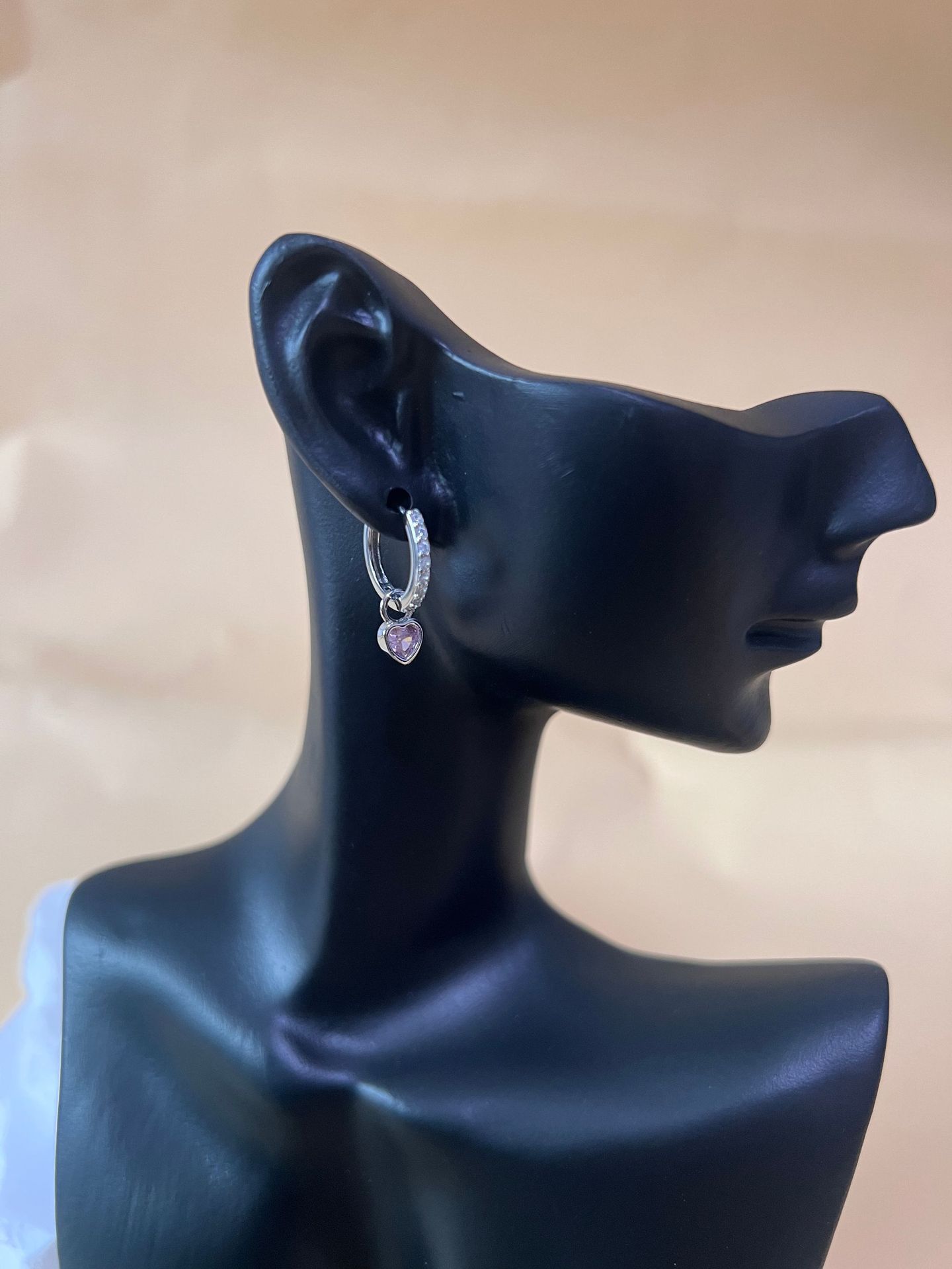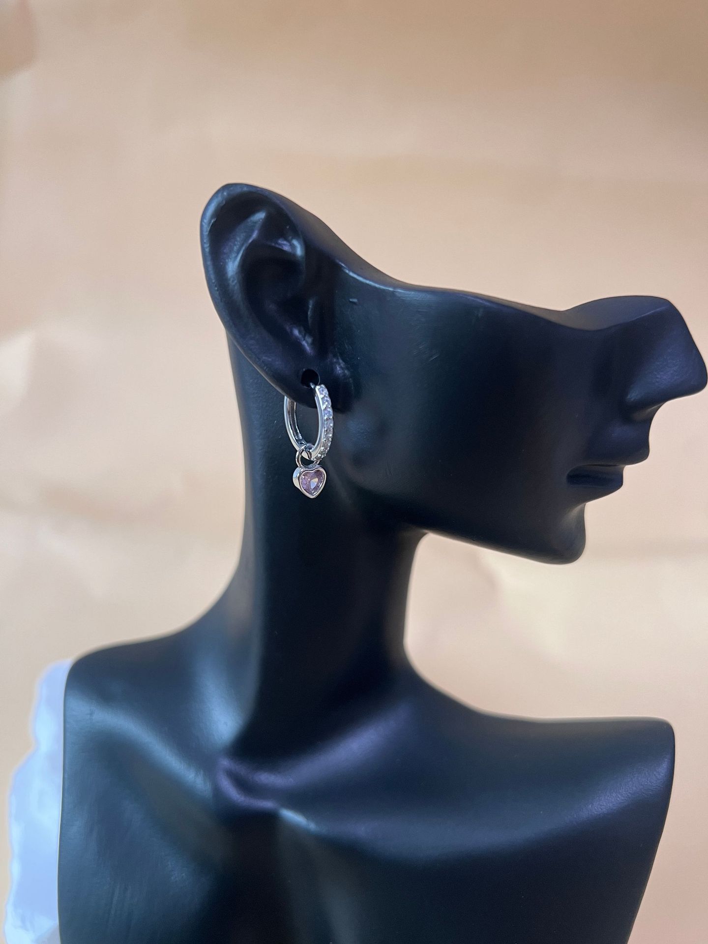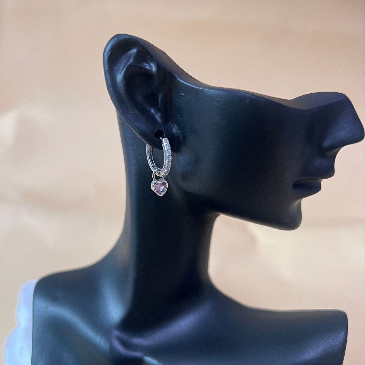 S925纯银针耳扣亚马逊跨境粉色心形吊坠耳环热卖环状耳环女士耳圈