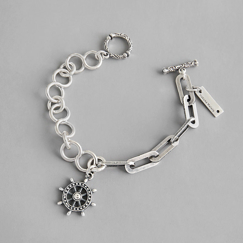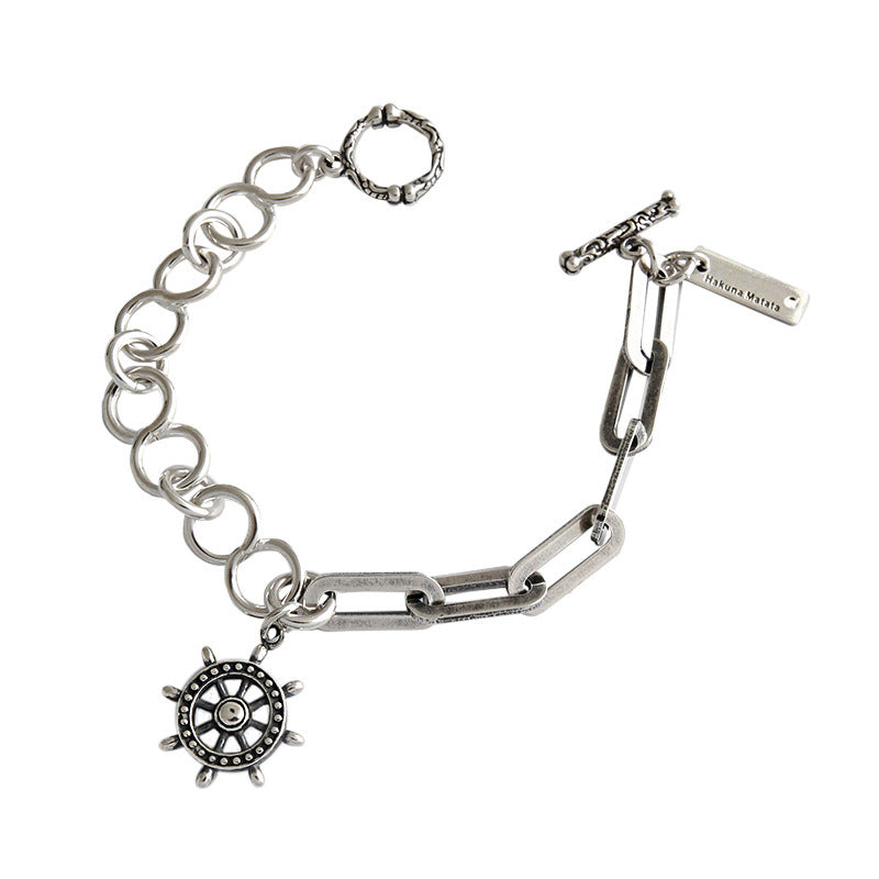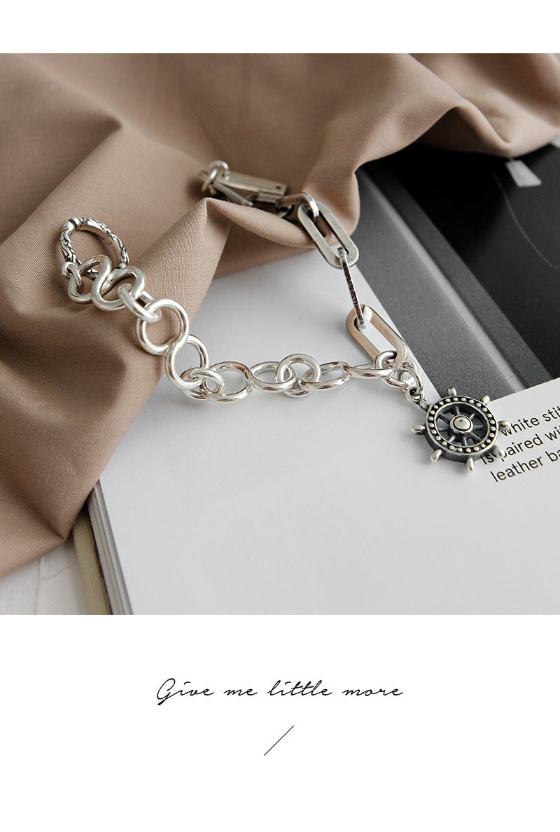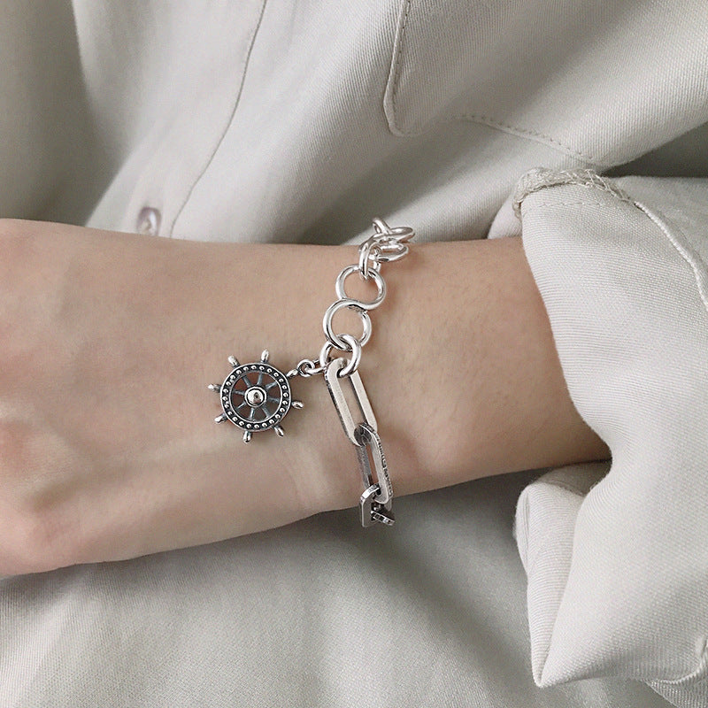 YH010韩版个性银链饰INS冷淡风复古做旧船舵链条S925纯银手链女